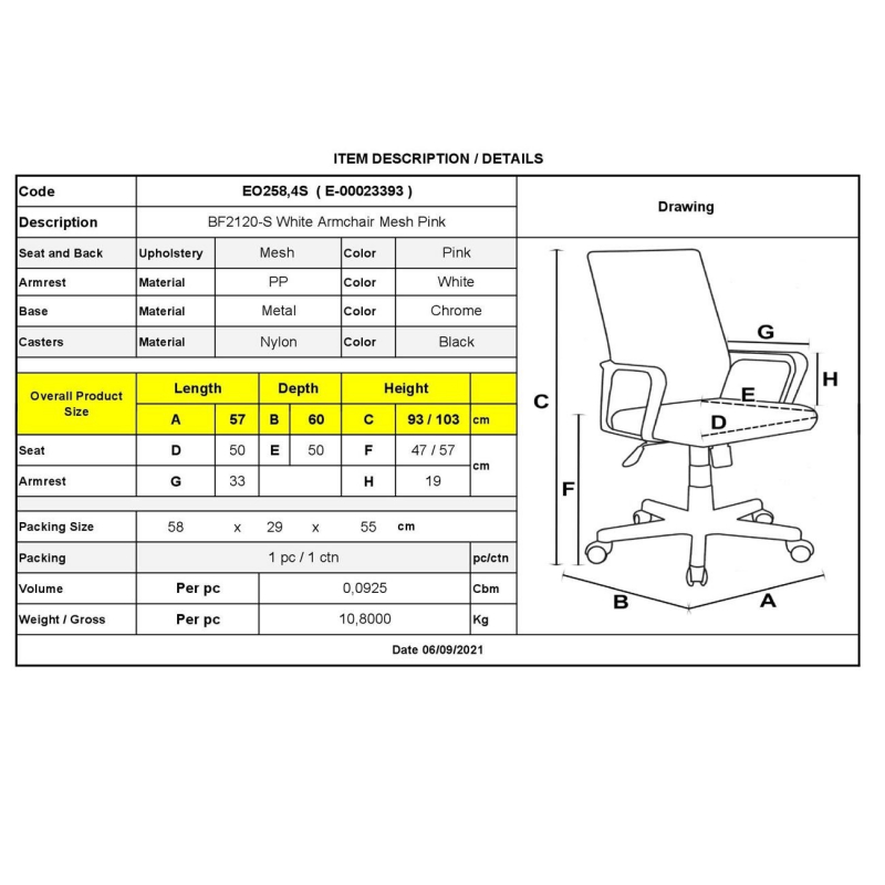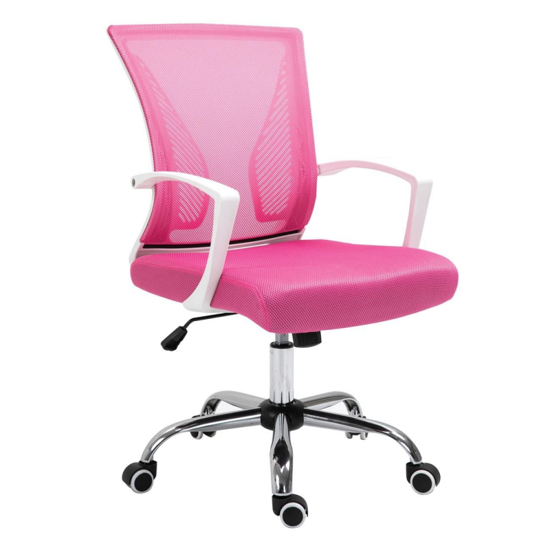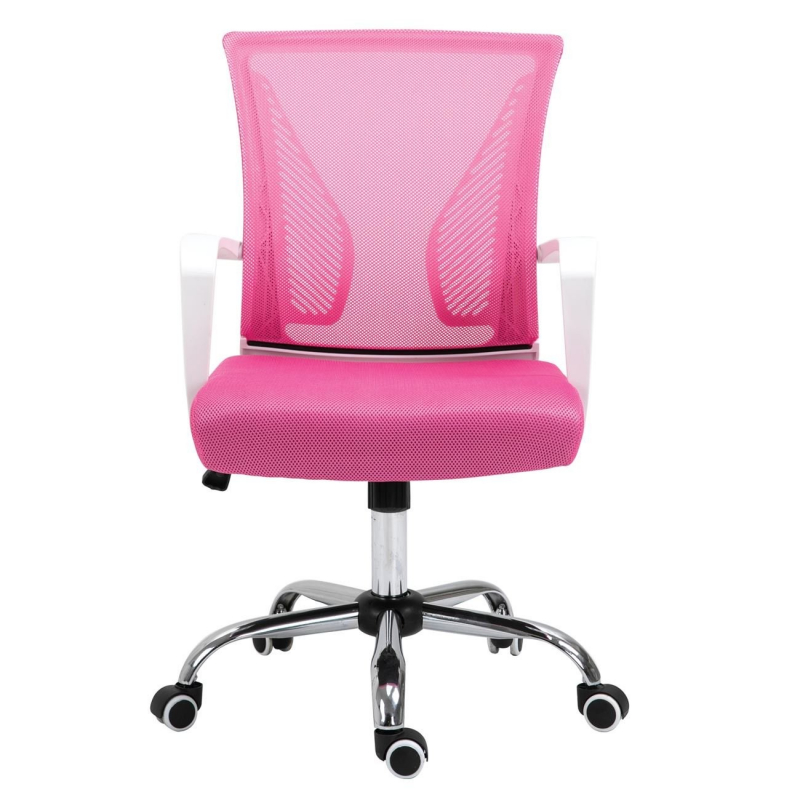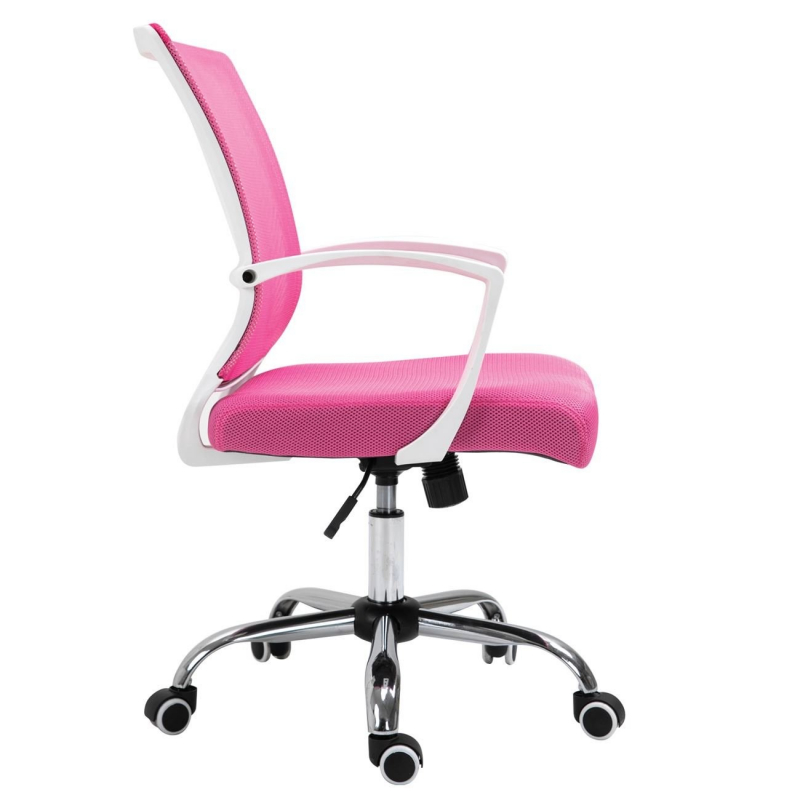 BF2120-S Πολυθρόνα Γραφείου Άσπρο - Μέταλλο Βάση Χρώμιο Mesh Ροζ 57x60x93/103cm