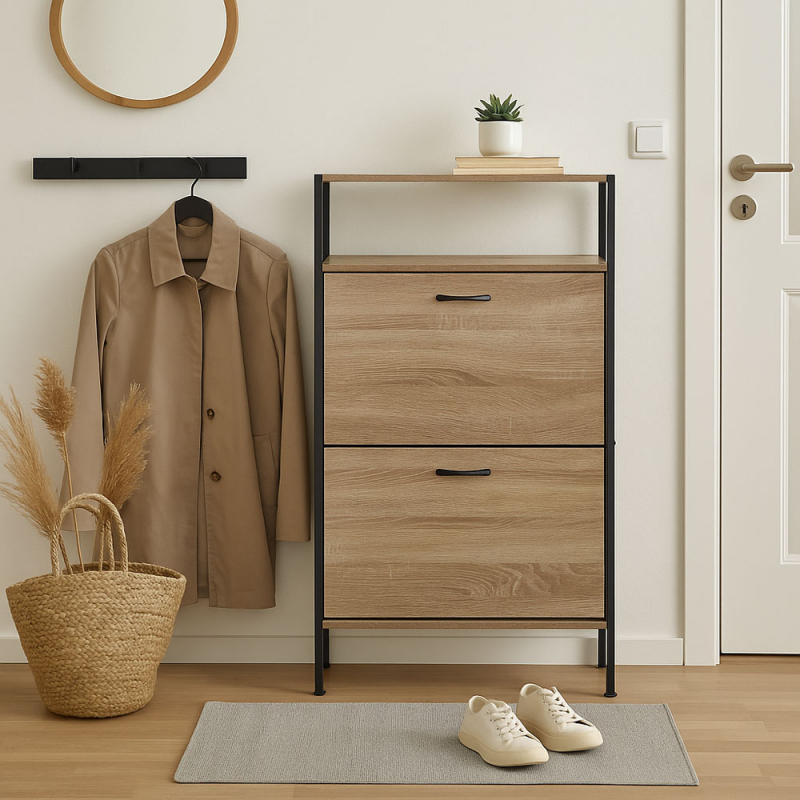 ΠΑΠΟΥΤΣΟΘΗΚΗ ΔΙΠΛΗ ΞΥΛΙΝΗ ΜΕ ΜΑΥΡΟ ΜΕΤΑΛΛΙΚΟ ΣΚΕΛΕΤΟ 60x24x105εκ. ANKOR