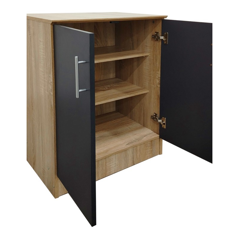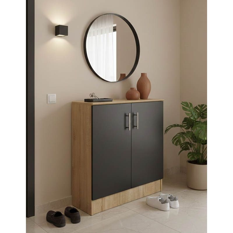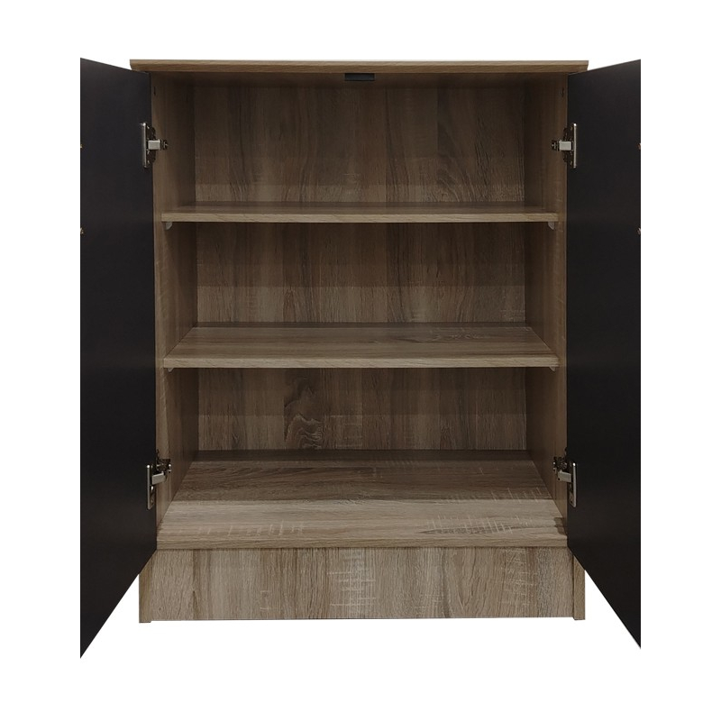 Αναβαθμίστε την οργάνωση του χώρου σας με αυτήν την κομψή και πρακτική παπουτσοθήκη Souken, ιδανική για την είσοδο, το χωλ ή ακόμη και το υπνοδωμάτιο. Σχεδιασμένη για να συνδυάζει λειτουργικότητα και στυλ, που ενσωματώνονται αρμονικά σε κάθε εσωτερική διακόσμηση. Τεχνικά χαρακτηριστικά: Σκελετός κατασκευασμένος από μοριοσανίδα με επένδυση μελαμίνης υψηλής ποιότητας, με αντοχή στην καταπόνηση, την φθορά και τον χρόνο. Εσωτερικά χωρίζεται σε 3 χώρους για την τακτοποίηση και τοποθέτηση των υποδημάτων. Χωρητικότητα υποδημάτων : 2 ζευγάρια ανά ράφι. Προσφέρεται σε sonoma-ανθρακί απόχρωση. Διάσταση προϊόντος: Μήκος: 60 εκ. Πλάτος: 40 εκ. Ύψος: 80 εκ.