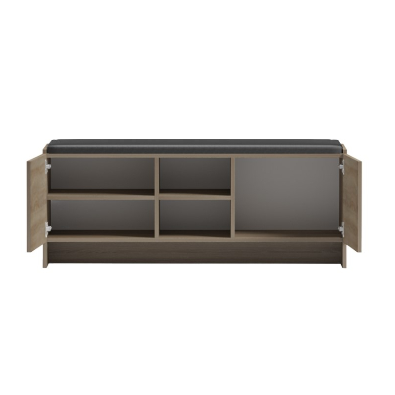 Το έπιπλο Zulla είναι η ιδανική, κομψή και πολυλειτουργική λύση για την οργάνωση του χώρου εισόδου. Συνδυάζει την άνεση ενός σκαμπό με μαξιλάρι με την πρακτικότητα μιας αποθηκευτικής μονάδας για παπούτσια και αξεσουάρ. Ιδανικό για: Διάδρομους, εισόδους ή βοηθητικούς χώρους όπου απαιτείται οργάνωση, άνεση και στυλ Τεχνικά χαρακτηριστικά: Σκελετός από υψηλής ποιότητας μοριοσανίδα με επένδυση μελαμίνης με αντοχή στη φθορά και στο χρόνο. Λειτουργία 2-σε-1: Χρησιμεύει ως άνετο κάθισμα για την αφαίρεση ή το φόρεμα των παπουτσιών, χάρη στο μαλακό, αφαιρούμενο pu μαξιλάρι σε μαύρη απόχρωση Προσφέρει βέλτιστη οργάνωση με δυο ντουλάπια με ανοιγόμενες πόρτες για διακριτική αποθήκευση παπουτσιών ή αντικειμένων και ενα κεντρικα ανοιχτό χώρο με ράφι , ιδανικό σημειο για τα παπούτσια καθημερινής χρήσης ή για μικρά καλάθια αποθήκευσης αξεσουάρ. Προσφέρει άφθονο αποθηκευτικό χώρο με ντουλάπια και ραφια για την έκθεση διακοσμητικών ή άλλων αγαπημένων σας αντικειμένων. Μοντέρνο, minimal design με καθαρές γραμμές. Προσφέρεται σε χρωμα sonoma Διάσταση προϊόντος: Μήκος: 110 εκ. Πλάτος: 37 εκ. Ύψος: 43 εκ.