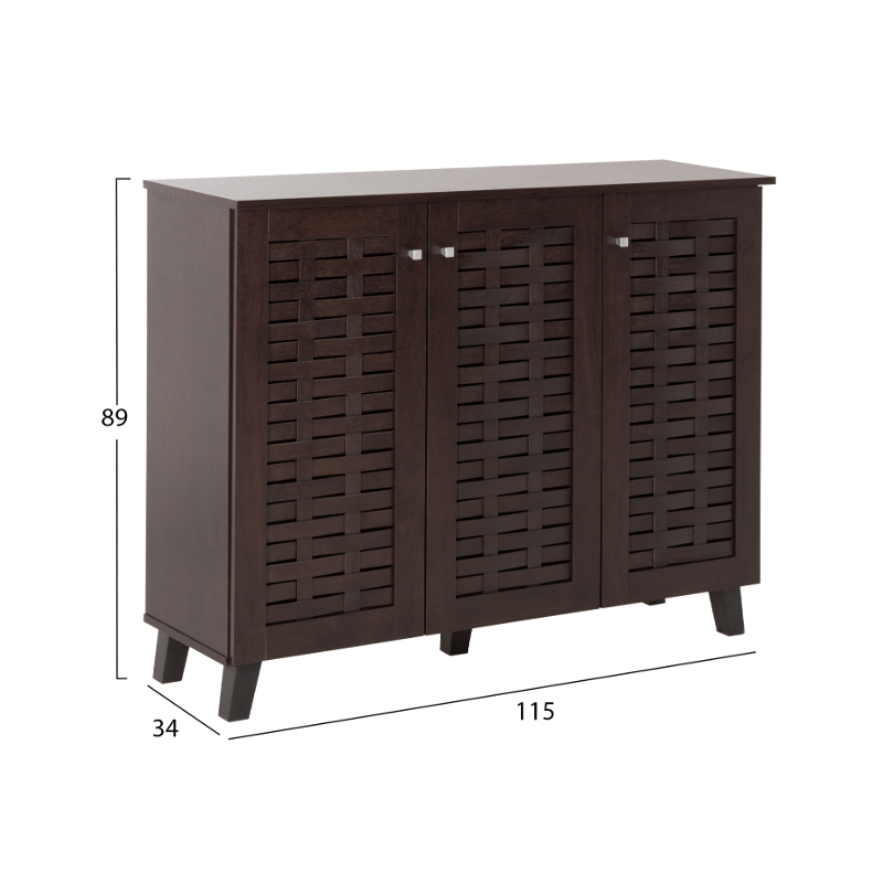 Σας παρουσιάζουμε την παπουτσοθήκη-ντουλάπι μελαμίνης PRODY σε WENGE χρώμα. Πρόκειται για ένα ντουλάπι με 2 ξεχωριστούς χώρους με 4 ράφια αποθήκευσης, και κλείνει με 3 πόρτες με μεταλλικά κυβάκια χερούλια. Μια διπλή πόρτα για τον μεγαλύτερο χώρο, και μια μονή πόρτα για τον μικρότερο χώρο. Το χαρακτηριστικό είναι ότι το κάθε επίπεδο και στους δύο χώρους, έχει διαφορετικό ύψος για να σας βοηθάει να τακτοποιείτε τα παπούτσια σας ανάλογα με το ύψος τους. Σκοπός μας είναι να σας βοηθήσουμε να οργανώσετε και να βελτιώσετε με τον καλύτερο δυνατό τρόπο οτιδήποτε θελήσετε. ΤΕΧΝΙΚΑ ΧΑΡΑΚΤΗΡΙΣΤΙΚΑ: ΔΙΑΣΤΑΣΕΙΣ: 115x34x89Y εκ. Διπλό ντουλάπι: Ράφι 1: 73x24x17,5Y εκ. Ράφι 2: 73x24x17,5Y εκ. Ράφι 3: 73x24x17,5Y εκ. Ράφι 4: 73x30x18Y εκ. Μονό ντουλάπι: Ράφι 1: 36x24x17,5Y εκ. Ράφι 2: 36x24x17,5Y εκ. Ράφι 3: 36x24x17,5Y εκ. Ράφι 4: 36x30x18Y εκ. ΥΛΙΚΟ ΚΑΤΑΣΚΕΥΗΣ: Η παπουτσοθήκη- ντουλάπα είναι κατασκευασμένη εξολοκλήρου από μελαμίνη. Η μελαμίνη είναι ένα συνθετικό υλικό πολύ ανθεκτικό και με μεγάλη σκληρότητα, σε μορφή φύλλων τα οποία στην συνέχεια μετατρέπονται σε μοριοσανίδες με πρεσάρισμα. Τα χερούλια στις πόρτες είναι μεταλλικά. Τα πόδια της παπουτσοθήκης είναι πλαστικά για ιδιαίτερη αντοχή στο βάρος, στο νερό και φυσικά στον χρόνο. ΣΥΝΤΗΡΗΣΗ: Η ντουλάπα-παπουτσοθήκη είναι εύκολη στην συντήρησή της. Η κατασκευή της από μελαμίνη της επιτρέπει να είναι ανθεκτική στην τριβή, τις γρατσουνιές και τους λεκέδες. Κατ’επέκταση, καθαρίζεται εύκολα με ένα υγρό πανί. ΠΛΕΟΝΕΚΤΗΜΑΤΑ: Η παπουτσοθήκη PRODY είναι όμορφη και λειτουργική. Επίσης, οι πόρτες έχουν πλεκτή σχεδίαση που επιτρέπει την κυκλοφορία του αέρα και συμβάλλει στον σωστό και αναγκαίο αερισμό της παπουτσοθήκης. Το χρώμα της και το γενικότερο design της, είναι σίγουρο ότι θα τραβήξουν τα βλέμματα και θα αναγκάσουν πολύ κόσμο να την συμπεριλάβουν στην wishlist τους. **Το προϊόν παραδίδεται αμοντάριστο σε εργοστασιακή συσκευασία