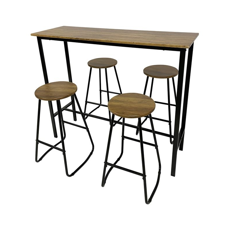 PUB Set Bar Τραπέζι + 4 Σκαμπό, Μέταλλο Βαφή Ανθρακί - Antique Brown Tab:120x40x100 Stool:Φ30 H.74