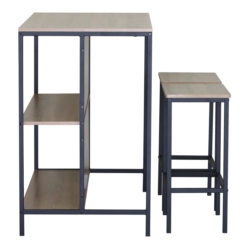 Σετ τραπέζι μπαρ Bailon pakoworld με ράφια σε oak απόχρωση με μαύρο μέταλλο 100x60x95εκ