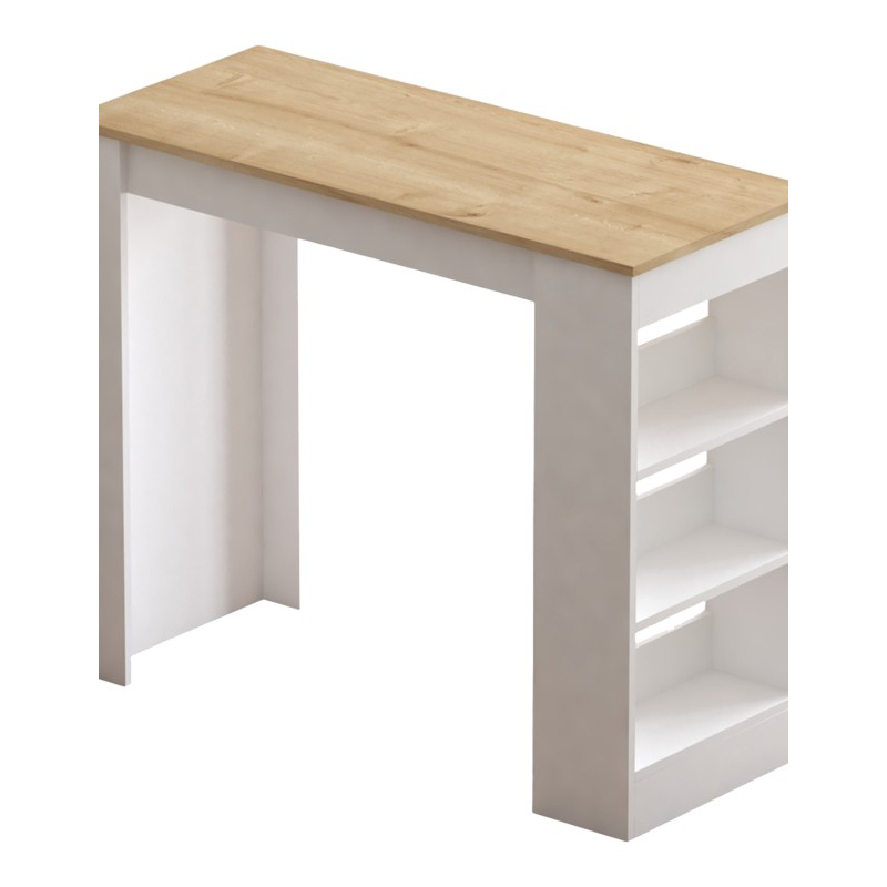 Αναζητάτε ένα τραπέζι για την κουζίνα ή την τραπεζαρία σας που θα εντυπωσιάσει με τον απλό αλλά ταυτόχρονα κομψό σχεδιασμό του; Το Riff είναι τέλειο για σένα! Μία εντυπωσιακή πρόταση διακόσμησης, ιδανική για το σπίτι ή το γραφείο που θα ανανεώσει δημιουργικά την αισθητική του χώρου σου. Τεχνικά χαρακτηριστικά Κατασκευασμένο από εξαιρετικής ποιότητας μοριοσανίδα 18mm με επένδυση μελαμίνης με αντοχή στη φθορά και στο χρόνο. Φέρει βοηθητικό χώρο αποθήκευσης τριών ραφιών. Μπορεί να χρησιμοποιηθεί ως τραπέζι μπαρ ή ως κονσόλα υποδοχής. Προσφέρεται σε χρώμα λευκό - sonoma. Διάσταση προϊόντος: Μήκος: 120 εκ. Πλάτος: 50 εκ. Ύψος: 100 εκ.