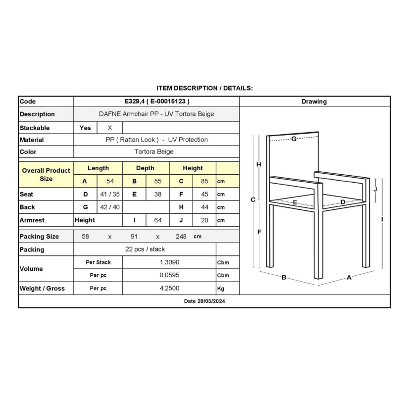 Ε329,4 DAFNE Πολυθρόνα PP-UV Tortora (Rattan Look) Στοιβαζόμενη