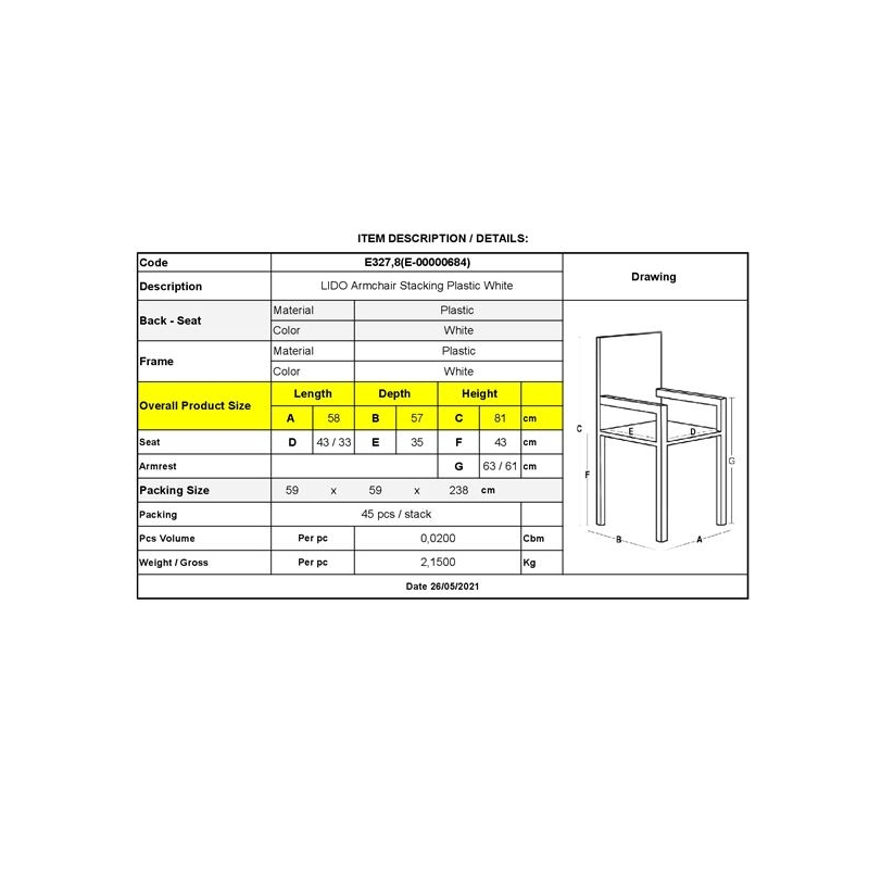 Ε327,8 - LIDO Πολυθρόνα PP Άσπρo, Στοιβαζόμενη