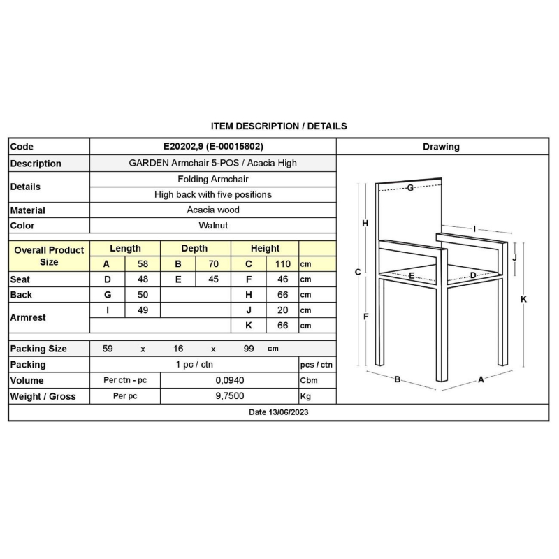 Ε20202,9 GARDEN Πολυθρόνα 5-Θ Πτυσ/νη Acacia High