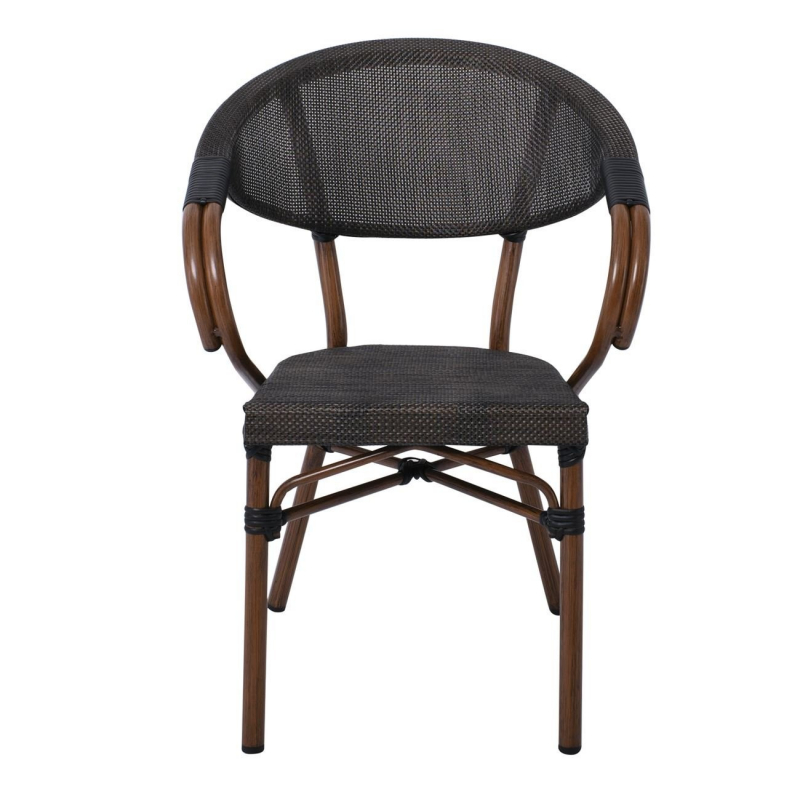 COSTA Πολυθρόνα Dining Αλουμινίου, Απόχρωση Καρυδί Textilene Μαύρο 58x57x83cm
