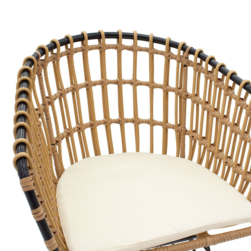 - Κυρίως επιφάνεια καθίσματος από PE rattan. Το PE rattan είναι ένα είδος οικολογικού συνθετικού rattan, ανακυκλώσιμο και με μεγαλύτερη ανθεκτικότητα σε σχέση με τα άλλα είδη.
