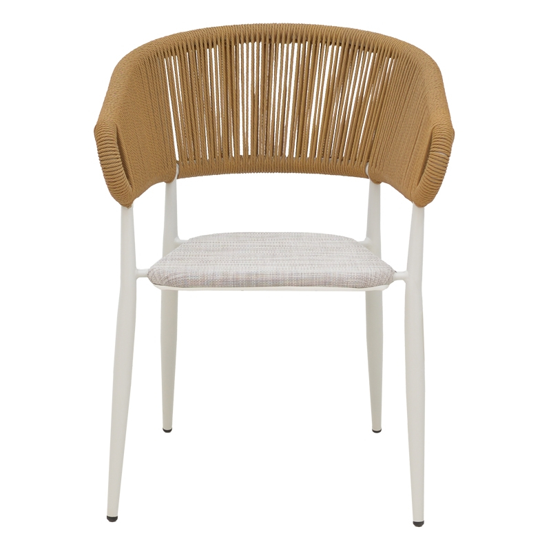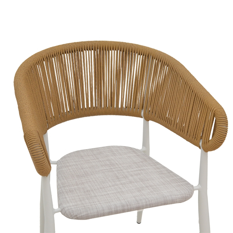 Πολυθρόνα αλουμινίου Raven pakoworld στοιβαζόμενη λευκός σκελετός-φυσικό textilene-rattan 57x62x78εκ