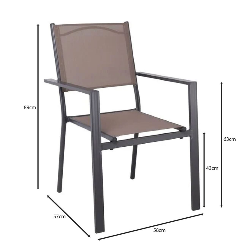 AMIRAL Πολυθρόνα Dining Στοιβαζόμενη, Aλουμίνιο Ανθρακί - Textilene Cappuccino 58x57x89cm