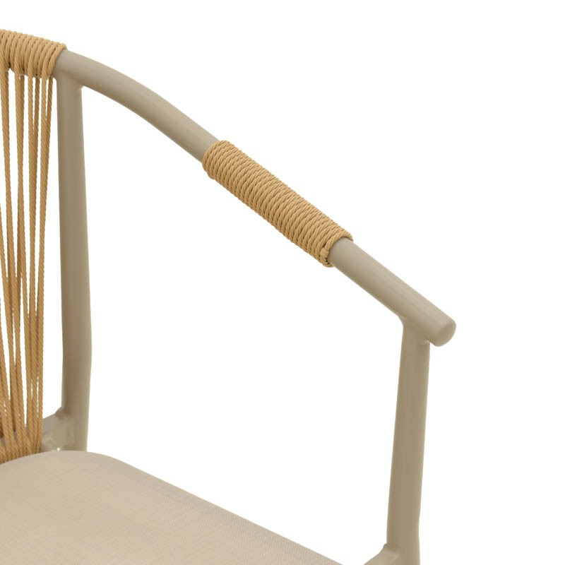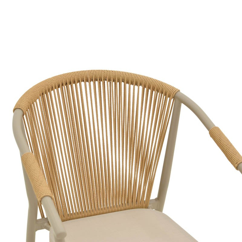 - Πλάτη καρέκλας από εξαιρετικής ποιότητας ρατάν. Η κύρια ιδιότητα του ράταν είναι η ευελιξία του, καθώς μπορεί να πλεκτεί και να διαμορφωθεί εύκολα. Επίσης, είναι ανθεκτικό και αντέχει στις καιρικές συνθήκες, καθιστώντας το ιδανικό για επιπλέον εξωτερικούς χώρους.
