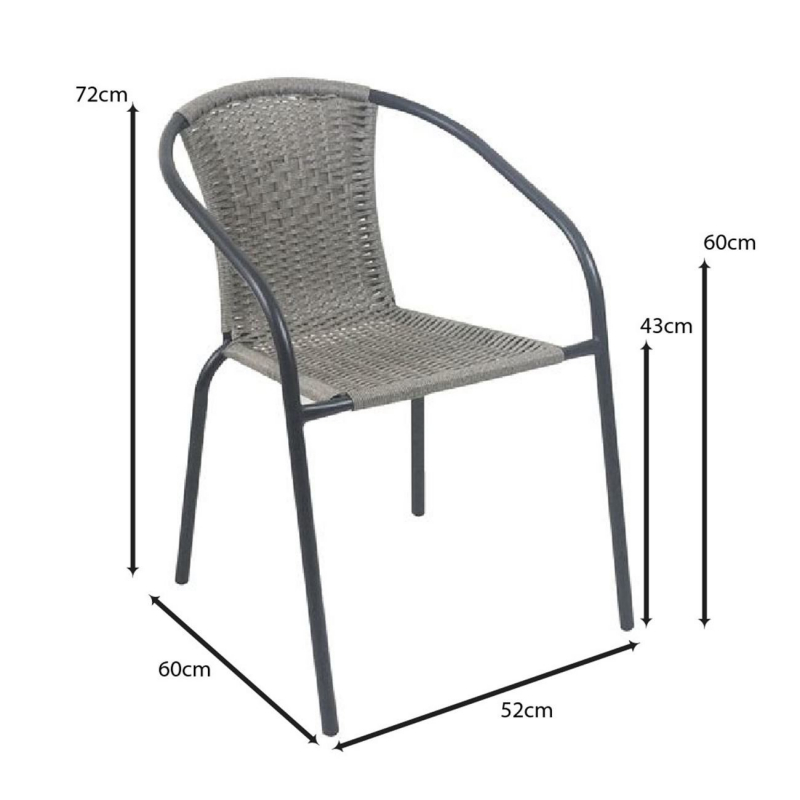 BALENO-W Πολυθρόνα Στοιβαζόμενη, Μέταλλο Βαφή Μαύρο, Wicker Mixed Grey 52x60x72cm