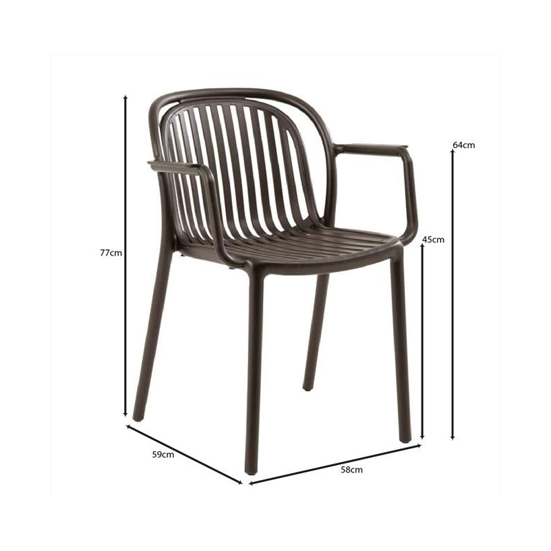 Ε3033,4 POCO Πολυθρόνα PP-UV Καφέ POCO Πολυθρόνα Εξωτερικές Διαστάσεις: 58x59x77cm Κάθισμα: Μήκος 41cm Βάθος 41cm Ύψος 45cm Πλάτη: Μήκος 39cm Εσωτερικό Ύψος 38cm Εξωτερικό Ύψος 77cm Μπράτσα: Μήκος 22cm Εσωτερικό Ύψος 19cm Εξωτερικό Ύψος 64cm PP-UV Καφέ Στοιβαζόμενη