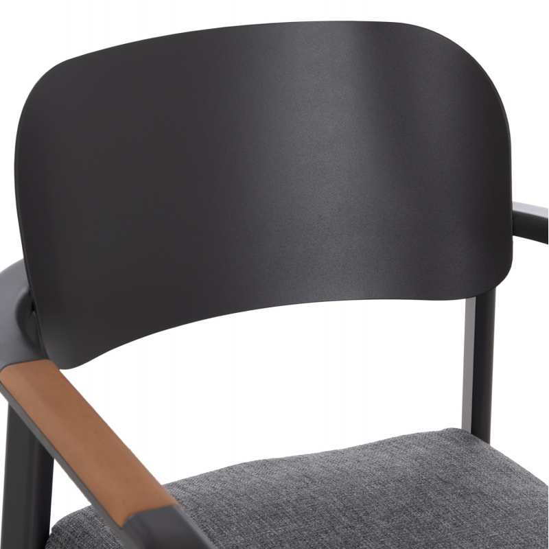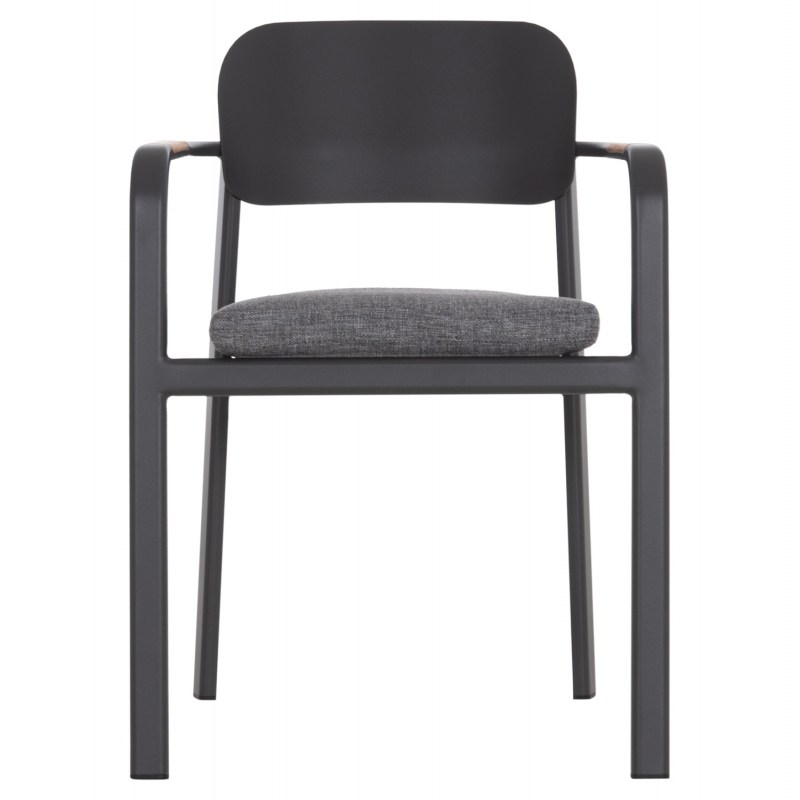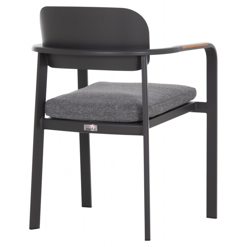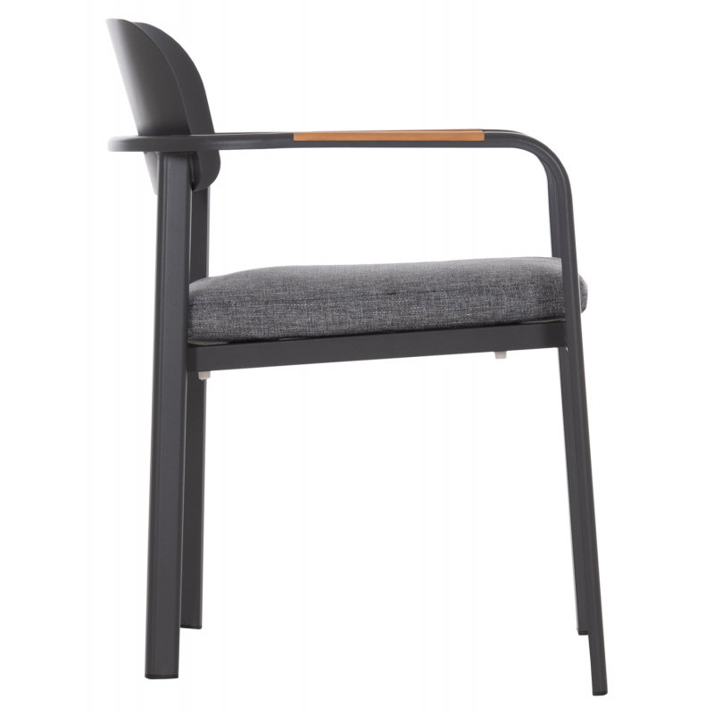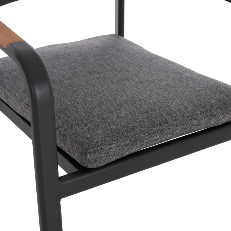 ΠΟΛΥΘΡΟΝΑ ΤΡΑΠΕΖΑΡΙΑΣ ELARA Η πολυθρόνα εξωτερικού χώρου ELARA συνδυάζει μοντέρνα αισθητική, ανθεκτικά υλικά και πρακτική λειτουργικότητα. Ο σκελετός από αλουμίνιο σε σκούρο γκρι χρώμα προσφέρει υψηλή αντοχή στις εξωτερικές συνθήκες, ενώ τα διακοσμητικά τελειώματα από ξύλο teak στα μπράτσα προσθέτουν φυσική και ζεστή πινελιά. Το μαξιλάρι καθίσματος διαθέτει κάλυμμα OLEFIN και αφρό 25D για άνεση κατά τη χρήση. Στοιβαζόμενη για εύκολη αποθήκευση. ΔΙΑΣΤΑΣΕΙΣ 56x62x78Υ εκ. Ύψος καθίσματος: 48 εκ. Ύψος μπράτσων: 65 εκ. Διαστάσεις καθίσματος: 40x41 εκ. Διαστάσεις πλάτης: 40x22 εκ. Απόσταση ποδιών: 47x48 εκ. ________________________________________ ΥΛΙΚΑ • Σκελετός αλουμινίου σκούρο γκρι με προδιαγραφές ποδιών 40x18x1.2mm. • Πλάτη από αλουμίνιο για μέγιστη αντοχή και σταθερότητα. • Μαξιλάρι καθίσματος πάχους 3 εκ. με αφρό πυκνότητας 25D. • Κάλυμμα μαξιλαριού από ύφασμα OLEFIN, κατάλληλο για εξωτερικούς χώρους. • Διακοσμητικά τελειώματα από φυσικό ξύλο teak στα μπράτσα. ________________________________________ ΣΥΝΤΗΡΗΣΗ • Καθαρισμός μεταλλικού σκελετού με νωπό πανί και ήπιο καθαριστικό. • Το ύφασμα OLEFIN καθαρίζεται εύκολα με σαπουνόνερο. • Το ξύλο teak μπορεί να συντηρηθεί προαιρετικά με ειδικό λάδι μια φορά τον χρόνο. • Συνίσταται αποθήκευση ή κάλυψη κατά τους χειμερινούς μήνες για μέγιστη διάρκεια ζωής. ________________________________________ ΠΛΕΟΝΕΚΤΗΜΑΤΑ • Στοιβαζόμενη για εξοικονόμηση χώρου στην αποθήκευση. • Μοντέρνος σχεδιασμός με κομψή σκούρα γκρι χρωματική παλέτα. • Ιδανική για οικιακή χρήση, επαγγελματικούς χώρους, καφετέριες και ξενοδοχεία.