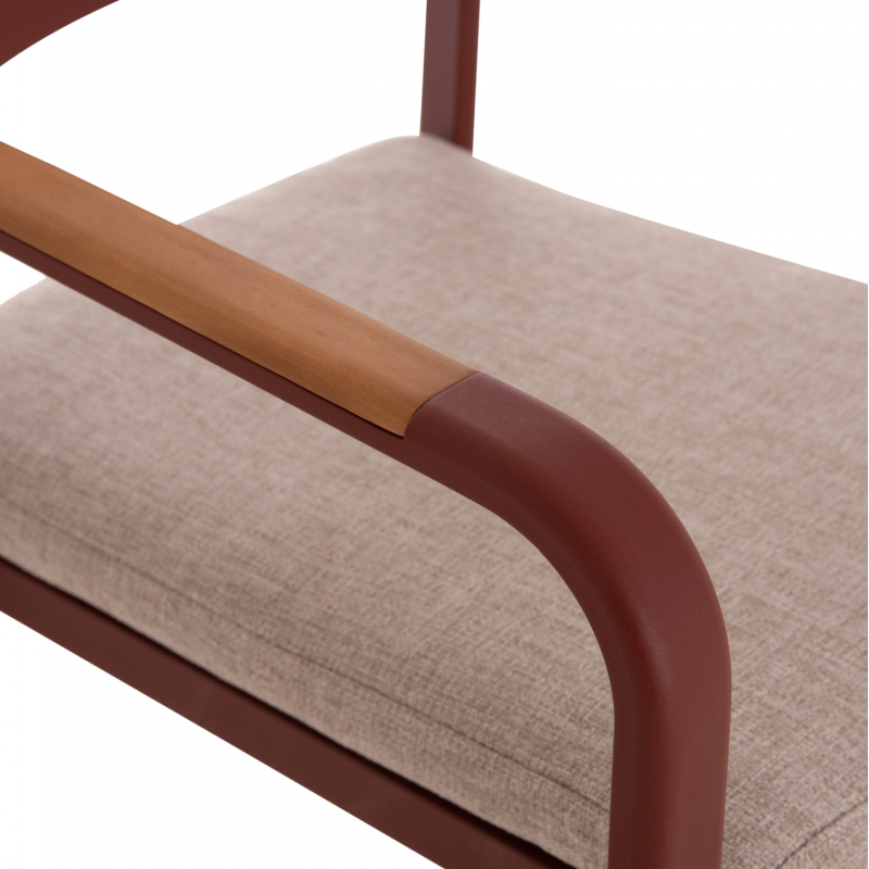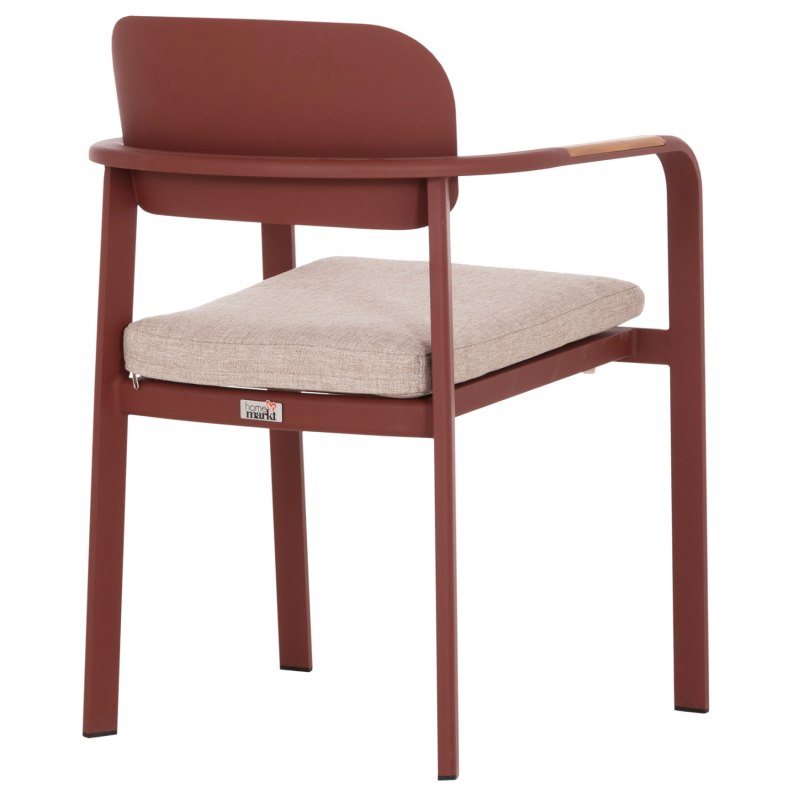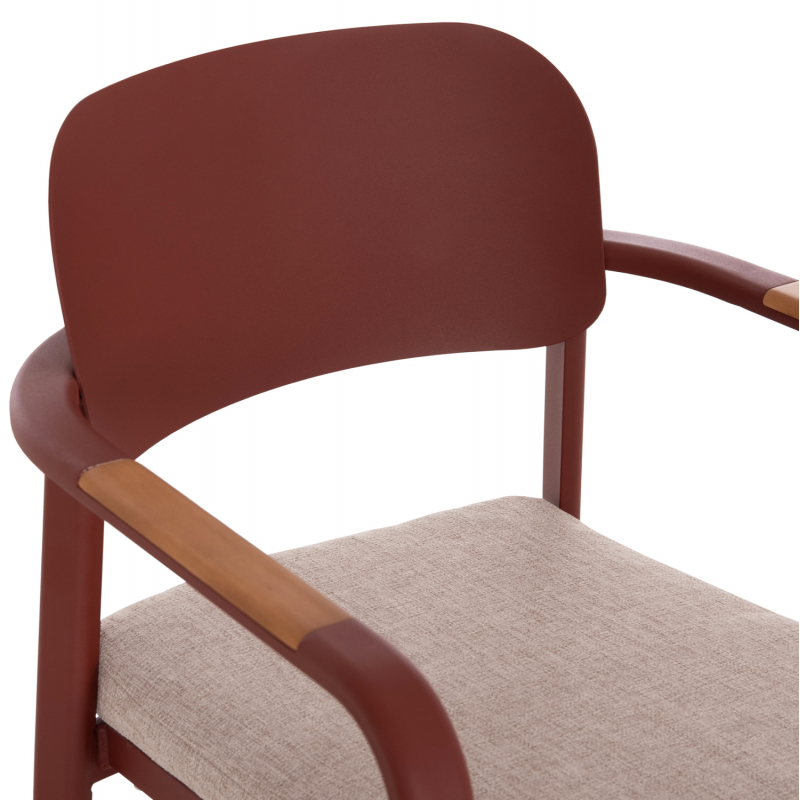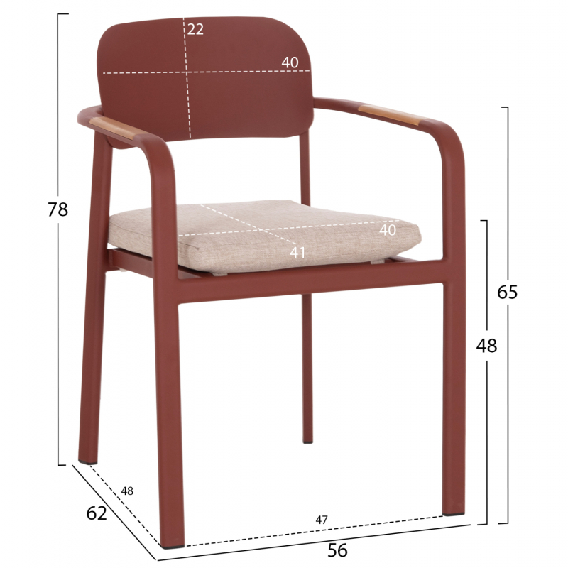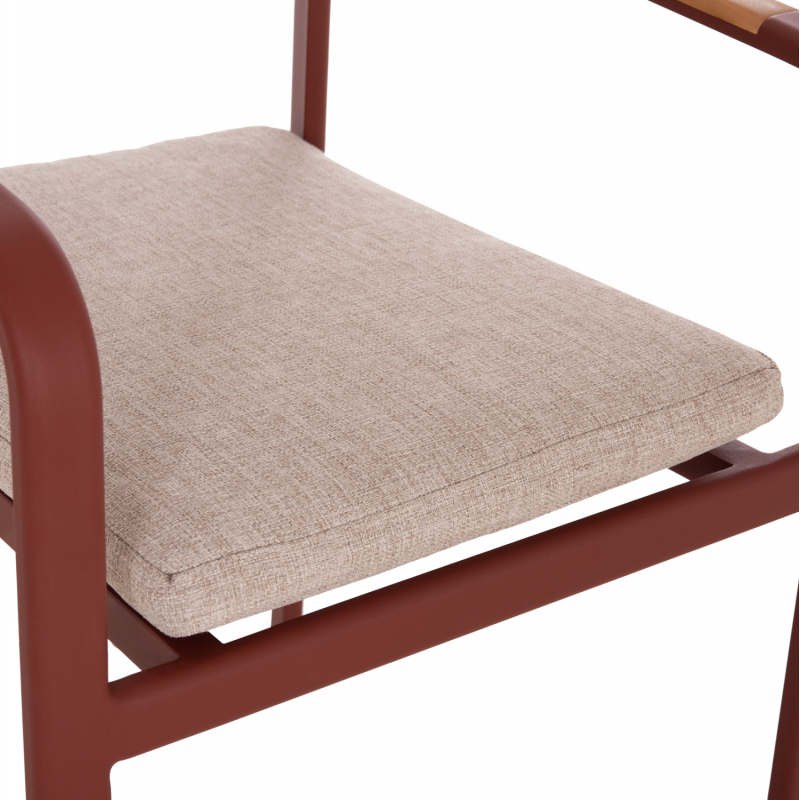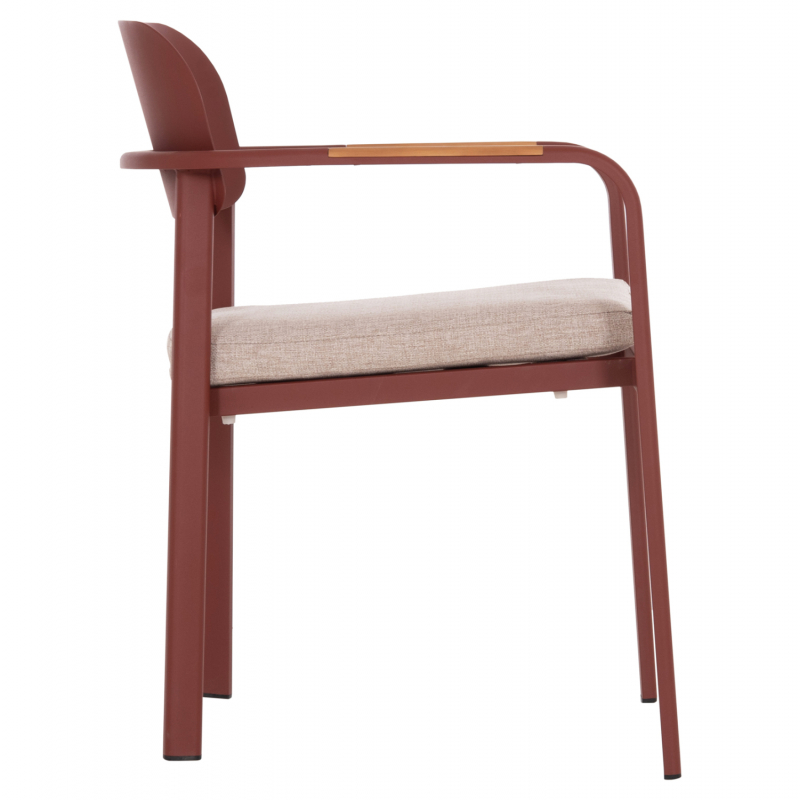 ΠΟΛΥΘΡΟΝΑ ΤΡΑΠΕΖΑΡΙΑΣ ELARA Η πολυθρόνα εξωτερικού χώρου ELARA συνδυάζει μοντέρνα αισθητική, ανθεκτικά υλικά και πρακτική λειτουργικότητα. Ο σκελετός από αλουμίνιο σε ΚΕΡΑΜΙΔΙ χρώμα προσφέρει υψηλή αντοχή στις εξωτερικές συνθήκες, ενώ τα διακοσμητικά τελειώματα από ξύλο teak στα μπράτσα προσθέτουν φυσική και ζεστή πινελιά. Το μαξιλάρι καθίσματος διαθέτει κάλυμμα OLEFIN σε ΜΠΕΖ χρώμα και αφρό 25D για άνεση κατά τη χρήση. Στοιβαζόμενη για εύκολη αποθήκευση. ΔΙΑΣΤΑΣΕΙΣ 56x62x78Υ εκ. Ύψος καθίσματος: 48 εκ. Ύψος μπράτσων: 65 εκ. Διαστάσεις καθίσματος: 40x41 εκ. Διαστάσεις πλάτης: 40x22 εκ. Απόσταση ποδιών: 47x48 εκ. ________________________________________ ΥΛΙΚΑ • Σκελετός αλουμινίου σε ΚΕΡΑΜΙΔΙ με προδιαγραφές ποδιών 40x18x1.2mm. • Πλάτη από αλουμίνιο για μέγιστη αντοχή και σταθερότητα. • Μαξιλάρι καθίσματος πάχους 3 εκ. με αφρό πυκνότητας 25D. • Κάλυμμα μαξιλαριού από ύφασμα OLEFIN, κατάλληλο για εξωτερικούς χώρους. • Διακοσμητικά τελειώματα από φυσικό ξύλο teak στα μπράτσα. ________________________________________ ΣΥΝΤΗΡΗΣΗ • Καθαρισμός μεταλλικού σκελετού με νωπό πανί και ήπιο καθαριστικό. • Το ύφασμα OLEFIN καθαρίζεται εύκολα με σαπουνόνερο. • Το ξύλο teak μπορεί να συντηρηθεί προαιρετικά με ειδικό λάδι μια φορά τον χρόνο. • Συνίσταται αποθήκευση ή κάλυψη κατά τους χειμερινούς μήνες για μέγιστη διάρκεια ζωής. ________________________________________ ΠΛΕΟΝΕΚΤΗΜΑΤΑ • Στοιβαζόμενη για εξοικονόμηση χώρου στην αποθήκευση. • Μοντέρνος σχεδιασμός με όμορφη χρωματική παλέτα. • Ιδανική για οικιακή χρήση, επαγγελματικούς χώρους, καφετέριες και ξενοδοχεία.
