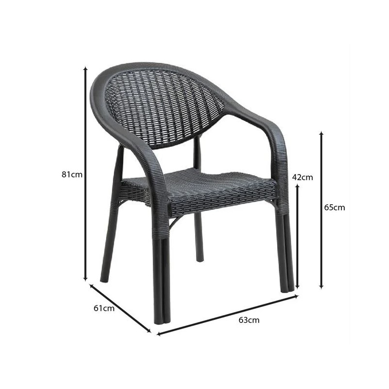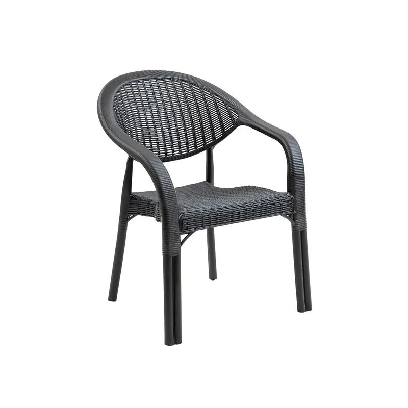 BAMBOO Pro Πολυθρόνα Κήπου - Βεράντας Στοιβαζόμενη, PP-UV (Rattan Look) Ανθρακί