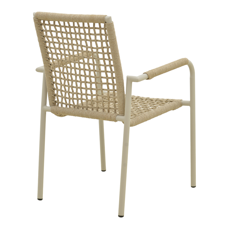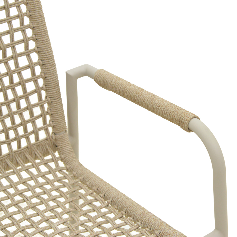 Πολυθρόνα Esence pakoworld στοιβαζόμενη αλουμίνιο λευκή-pe σχοινί σε μπεζ απόχρωση 56x61,5x87,5εκ