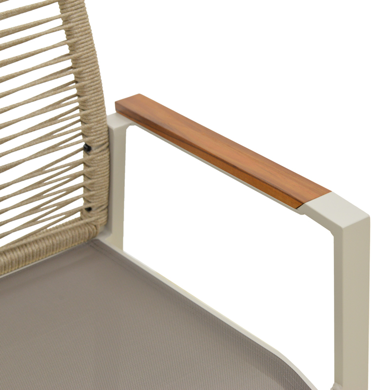 Πολυθρόνα Aegean pakoworld στοιβαζόμενη -teak- αλουμίνιο και μόκα textline με pe σχοινί μπεζ 56,5x58x91εκ