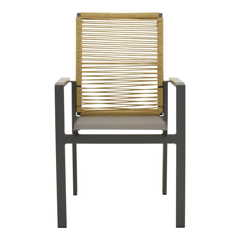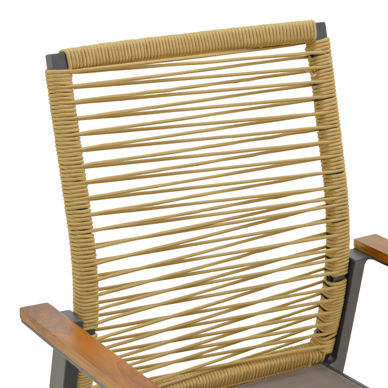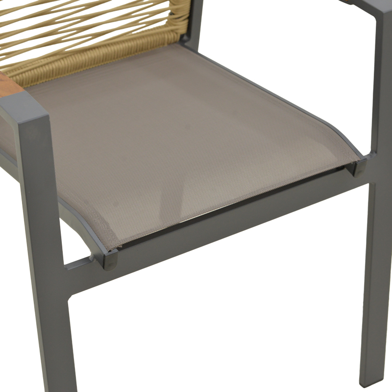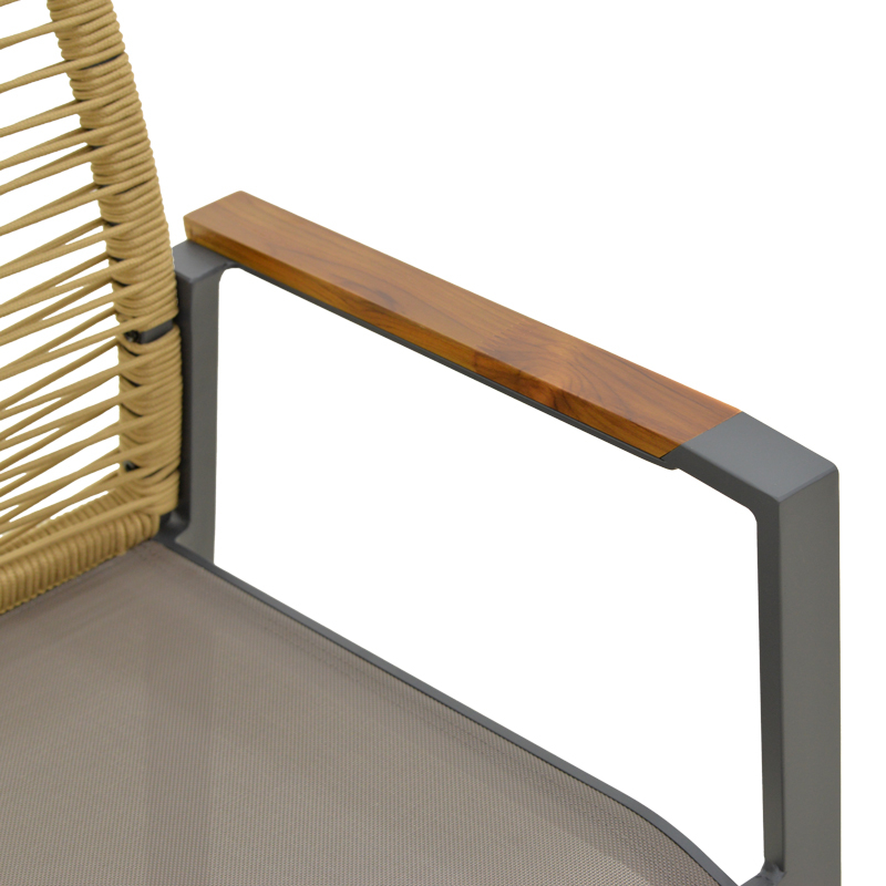 Πολυθρόνα Aegean pakoworld στοιβαζόμενη teak-pe σχοινί σε φυσική - αλουμίνιο κ textline σε ανθρακί απόχρωση 57x64x87εκ