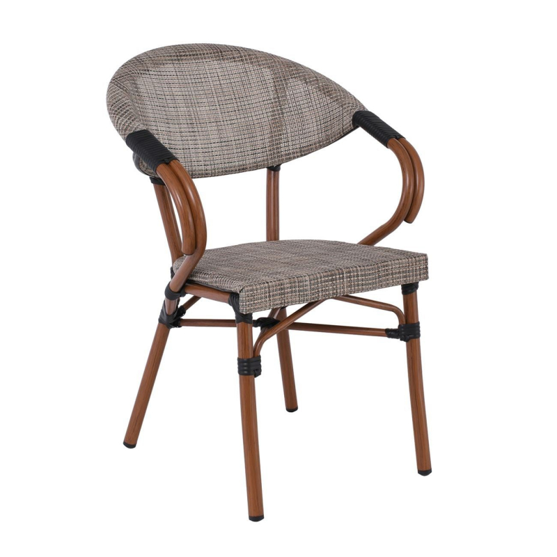 COSTA Πολυθρόνα Dining Αλουμινίου, Απόχρωση Καρυδί Textilene Μπεζ 58x57x83cm