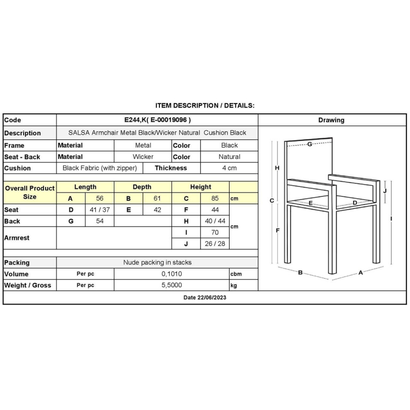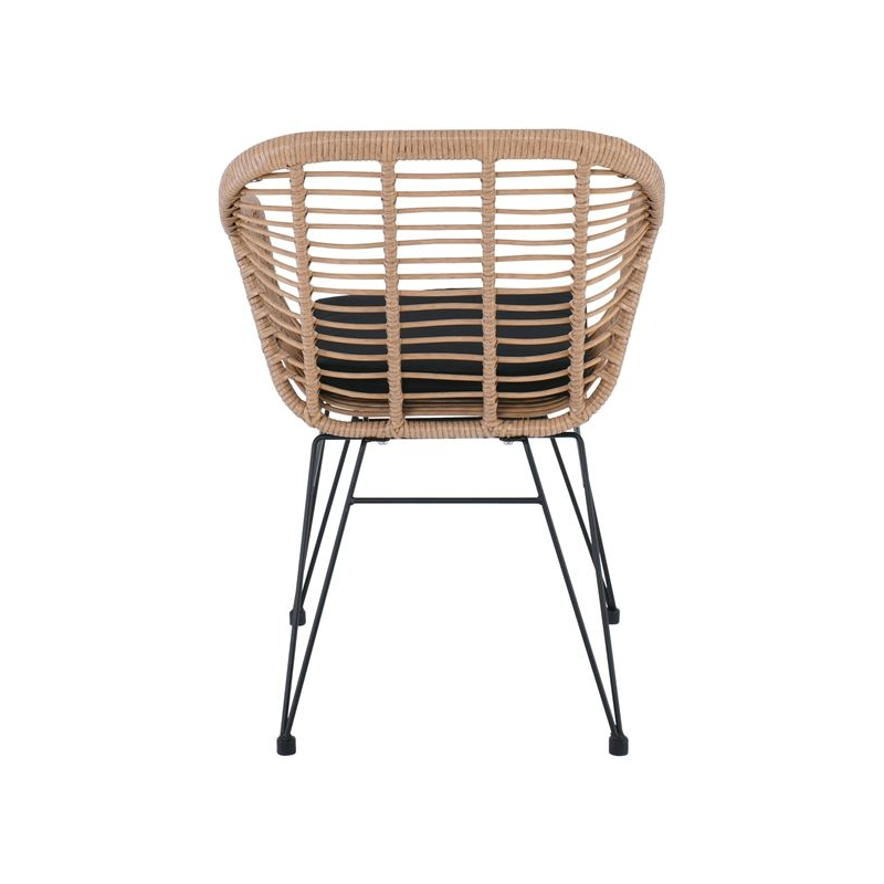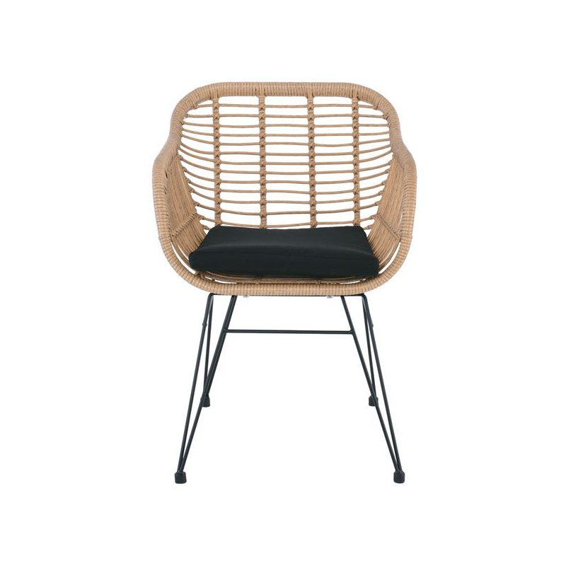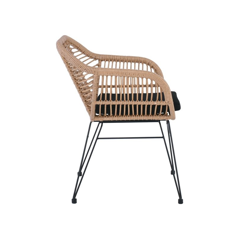 SALSA Πολυθρόνα Τραπεζαρίας Κήπου, Μέταλλο Βαφή Μαύρο, Wicker Φυσικό, Μαξιλάρι Μαύρο 56x61x85cm