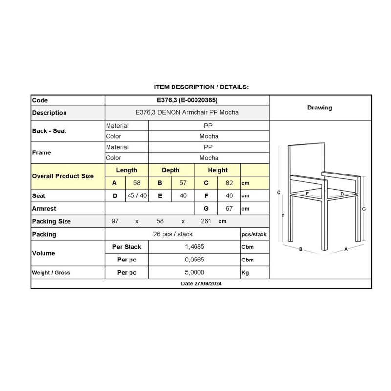 DENON Πολυθρόνα Στοιβαζόμενη PP-UV Καφέ Mocha 58x57x82cm