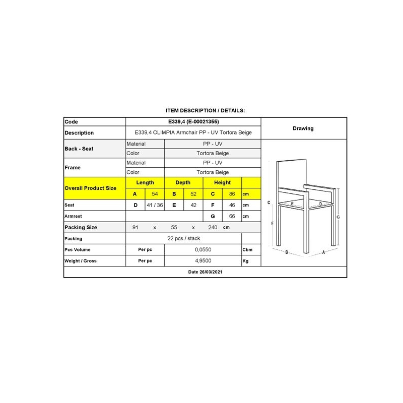 Ε339,4 OLIMPIA Πολυθρόνα PP-UV Tortora Στοιβαζόμενη