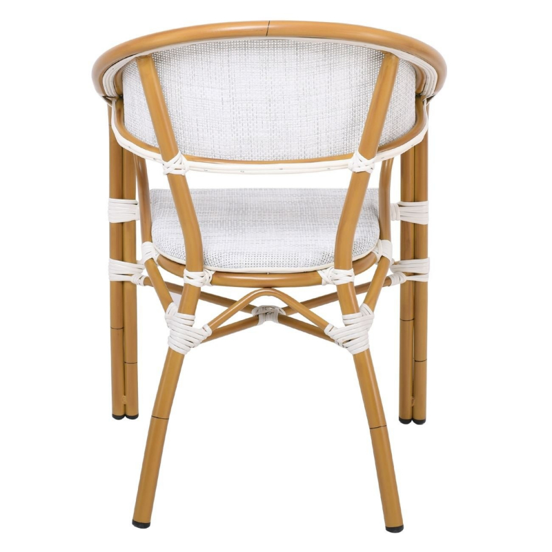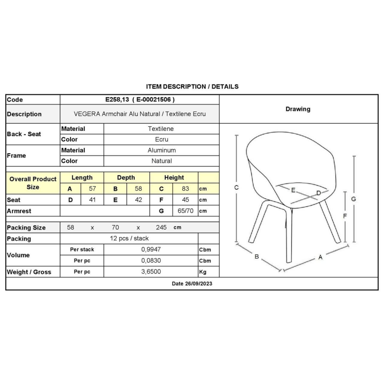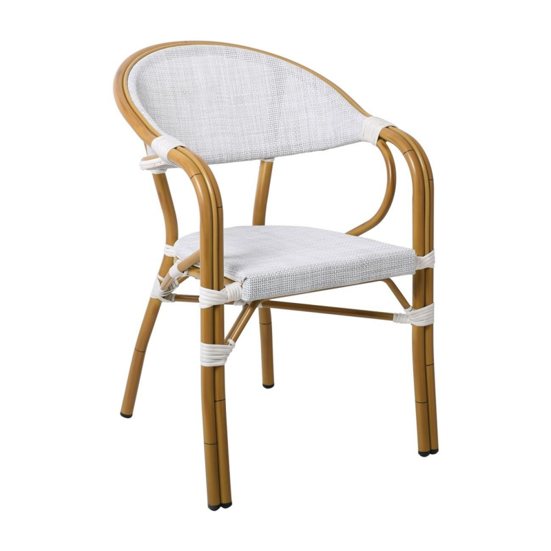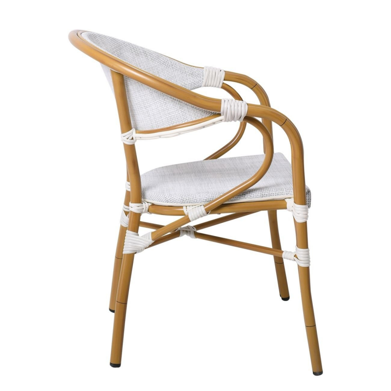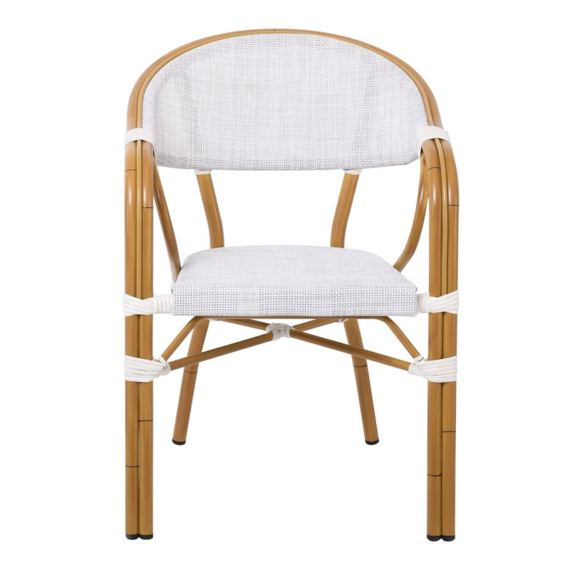 VEGERA Πολυθρόνα Dining Αλουμίνιο Βαφή Φυσικό Textilene Εκρού, Στοιβαζόμενη 57x58x83cm