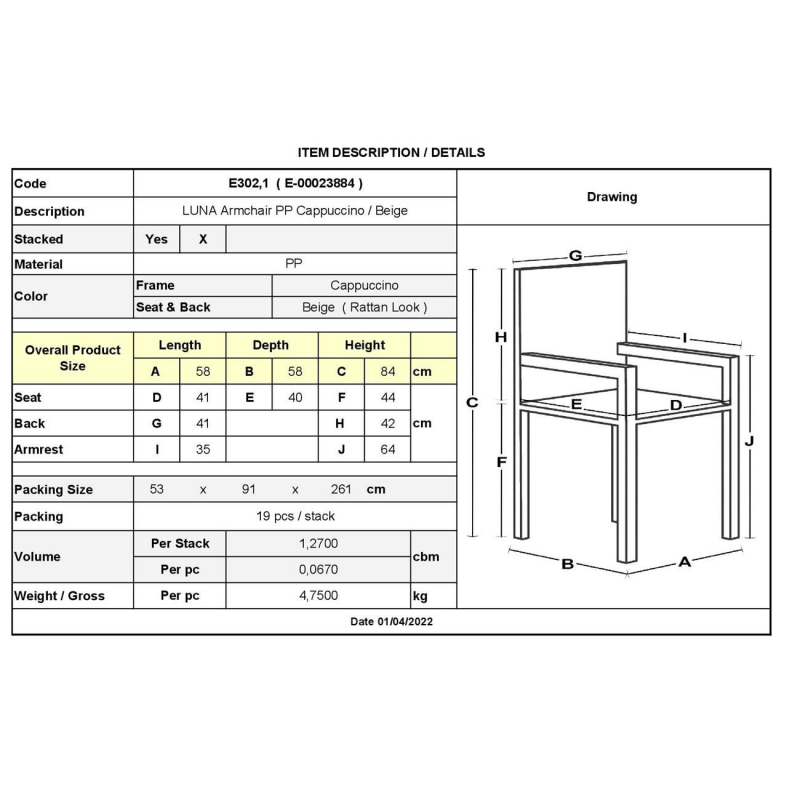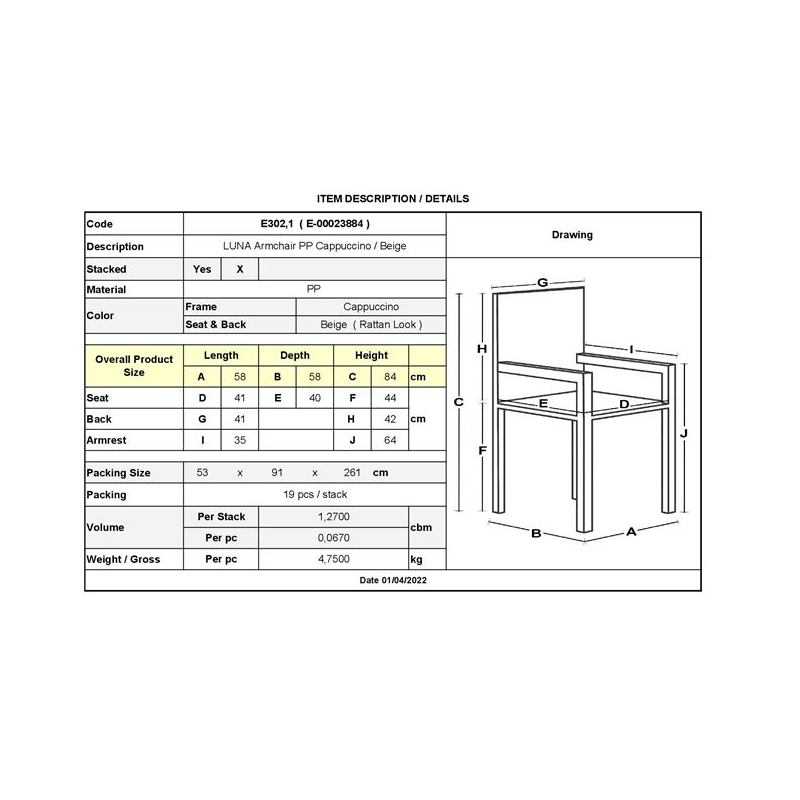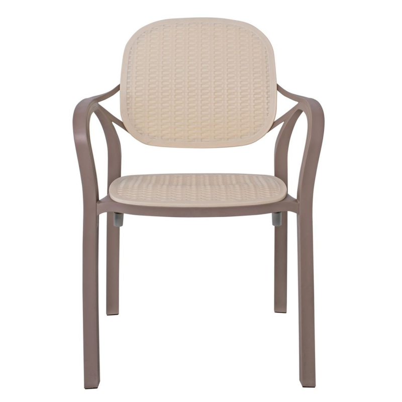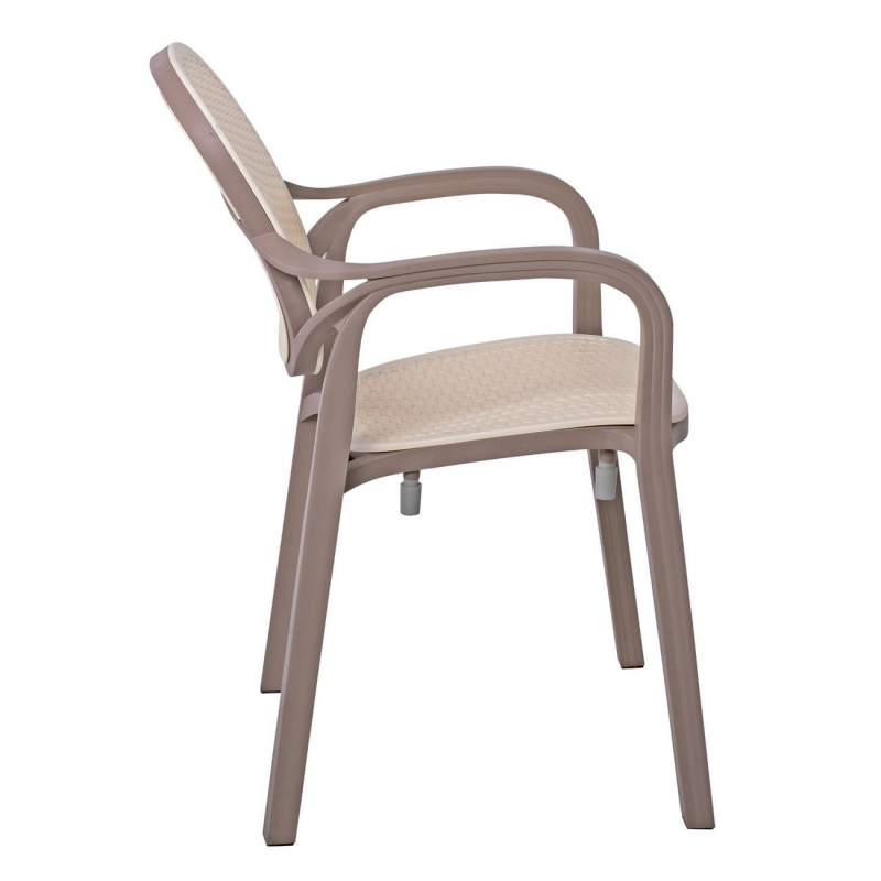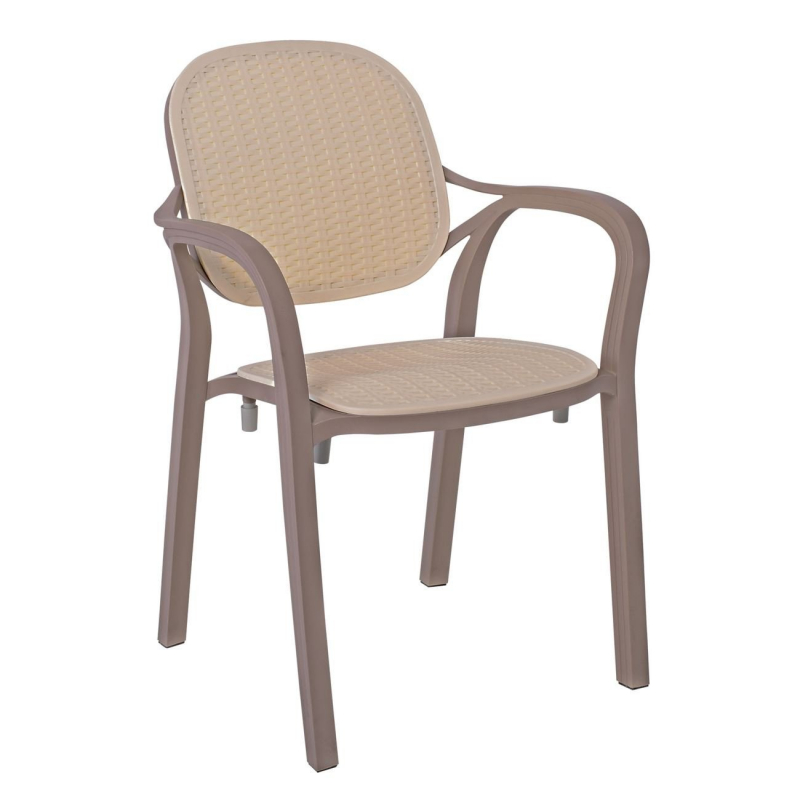 LUNA Πολυθρόνα Κήπου Στοιβαζόμενη, PP Απόχρωση Cappuccino & Μπεζ(Rattan Look) 58x58x84cm