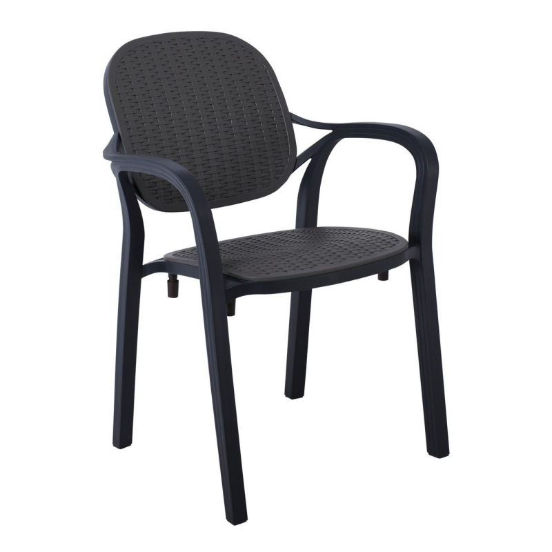 LUNA Πολυθρόνα Κήπου - Βεράντας Στοιβαζόμενη ,PP Απόχρωση Ανθρακί (Rattan Look) 58x58x84cm