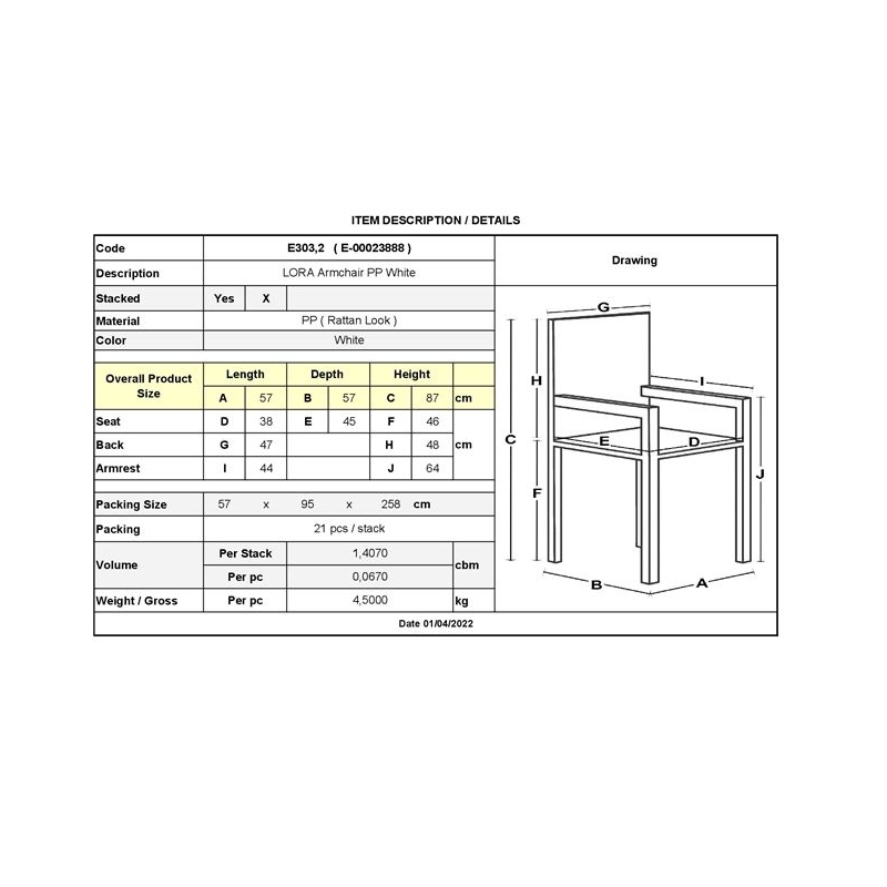 Ε303,2 LORA Πολυθρόνα PP Άσπρο