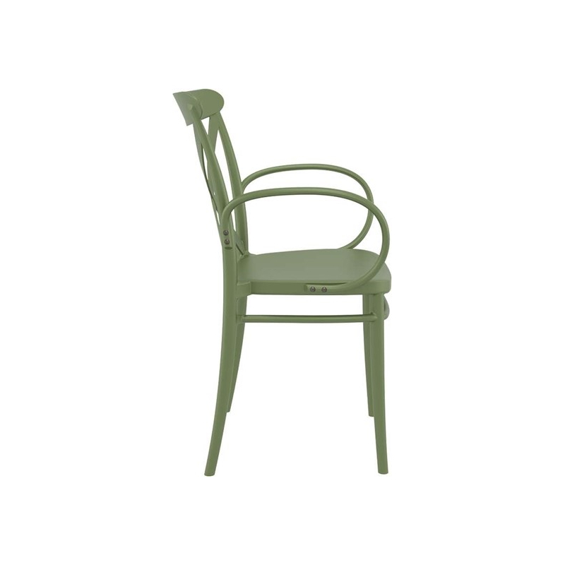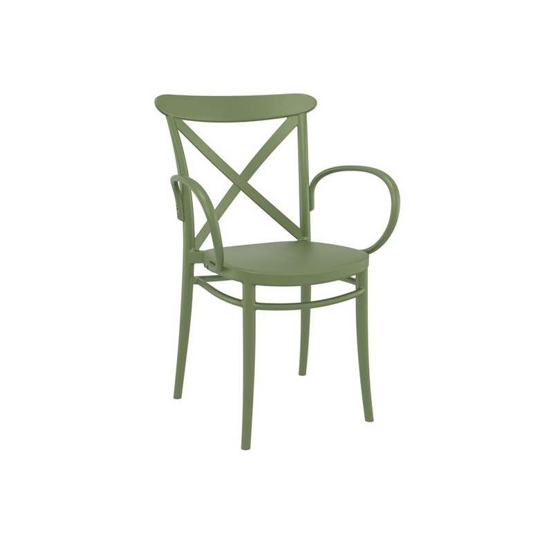 Πολυθρόνα CROSS XL του οίκου Siesta σε olive green χρώμα, με design υψηλής αισθητικής. Κατασκευασμένη από πολυπροπυλένιο με 20% fiber glass για απόλυτη αντοχή στον χρόνο. Κατάλληλη για εσωτερική και εξωτερική χρήση, στοιβαζόμενη,ιδανική επιλογή και για επαγγελματικούς χώρους.Πιστοποιημένο προϊόν από τον Ιταλικό οίκο CATAS.