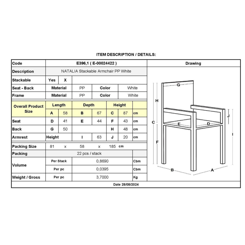 NATALIA Πολυθρόνα Τραπεζαρίας Κήπου Στοιβαζόμενη, PP Απόχρωση Άσπρο/Μπεζ 58x67x87cm