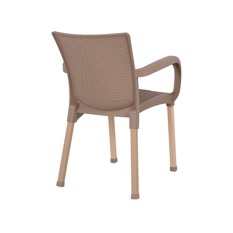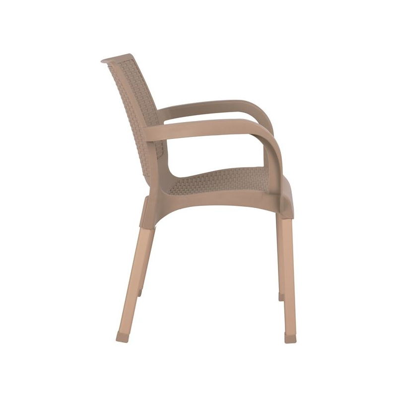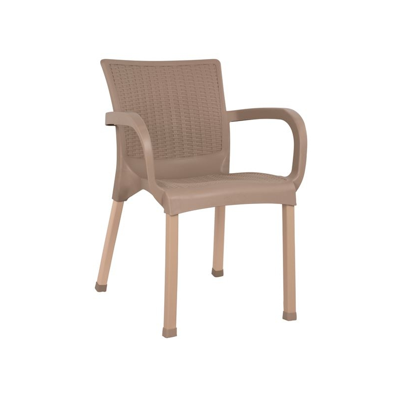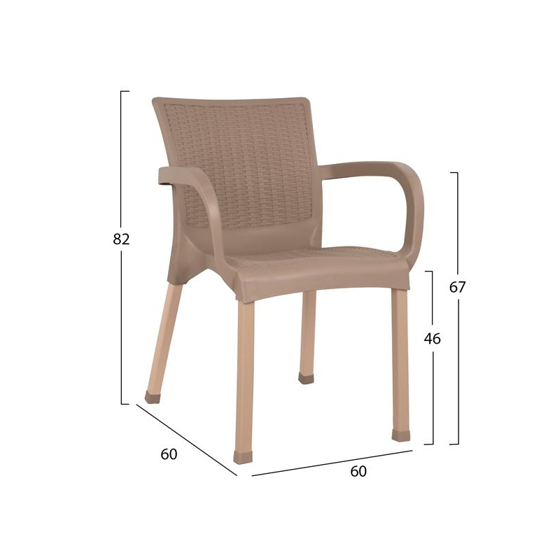 Καρέκλα με μπράτσα σε μοντέρνο σχεδιασμό και μεγάλη αντοχή σε απόχρωση καπουτσίνο. Ιδανική για επαγγελματικούς χώρους αλλά και για το σπίτι σας, θα σας χαρίσει άνεση και ξεκούραση. Διαστάσεις: 60x60x82 εκ. Ύψος καθίσματος: 46 εκ. Ύψος μπράτσων: 67 εκ. Διαστάσεις καθίσματος: 32-45x42 εκ.