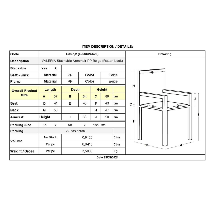 Ε397,2 VALERIA Πολυθρόνα PP Μπεζ (Rattan Look) Στοιβαζόμενη