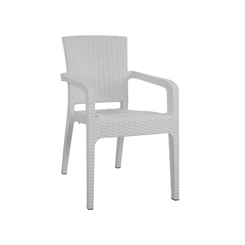 Καρέκλα με μπράτσα απο μασίφ πρωτογενές πολυπροπυλένιο σε μοντέρνο σχεδιασμό και μεγάλη αντοχή σε λευκή απόχρωση. Πολύ στοιβαρής κατασκευής. Ιδανική για επαγγελματικούς χώρους αλλά και για το σπίτι σας, θα σας χαρίσει άνεση και ξεκούραση. Διαστάσεις: 58x55x87 εκ. Ύψος καθίσματος: 46 εκ. Ύψος μπράτσων: 64 εκ. Διαστάσεις καθίσματος: 47x47 εκ.
