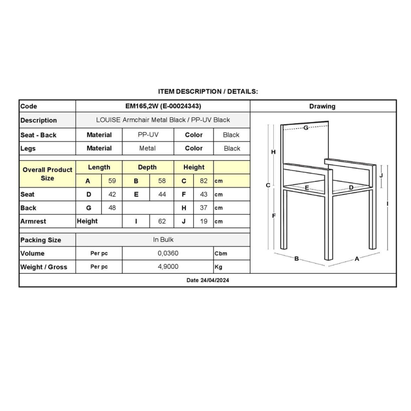 ΕΜ165,2W LOUISE Πολυθρόνα Μέταλλο Βαφή Μαύρο/PP-UV Μαύρο