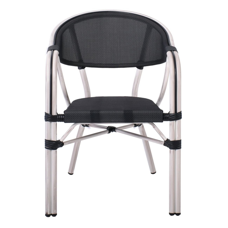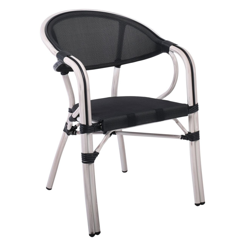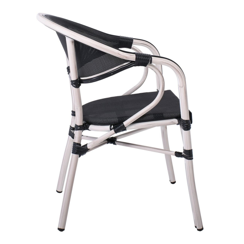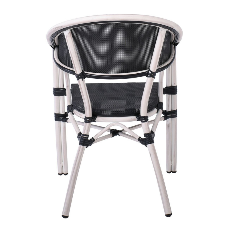 VEGERA Πολυθρόνα Dining Αλουμίνιο Βαφή Antique White Textilene Μαύρο, Στοιβαζόμενη 57x58x83cm