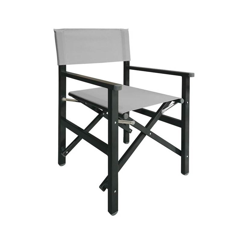 Σκηνοθέτη Πολυθρόνα, Αλουμίνιο Ανθρακί (1,2mm), Textilene Γκρι, Πτυσσόμενη(2,75kg) 54x50x88cm