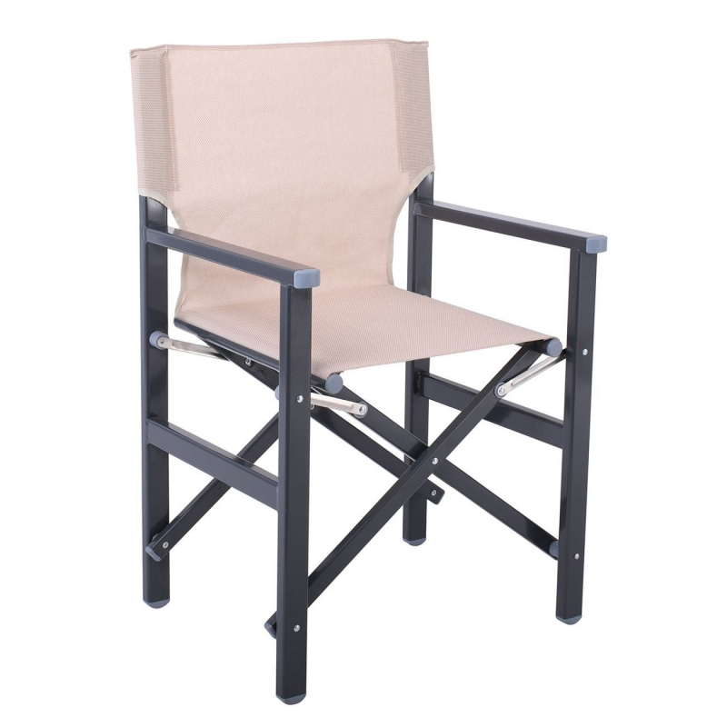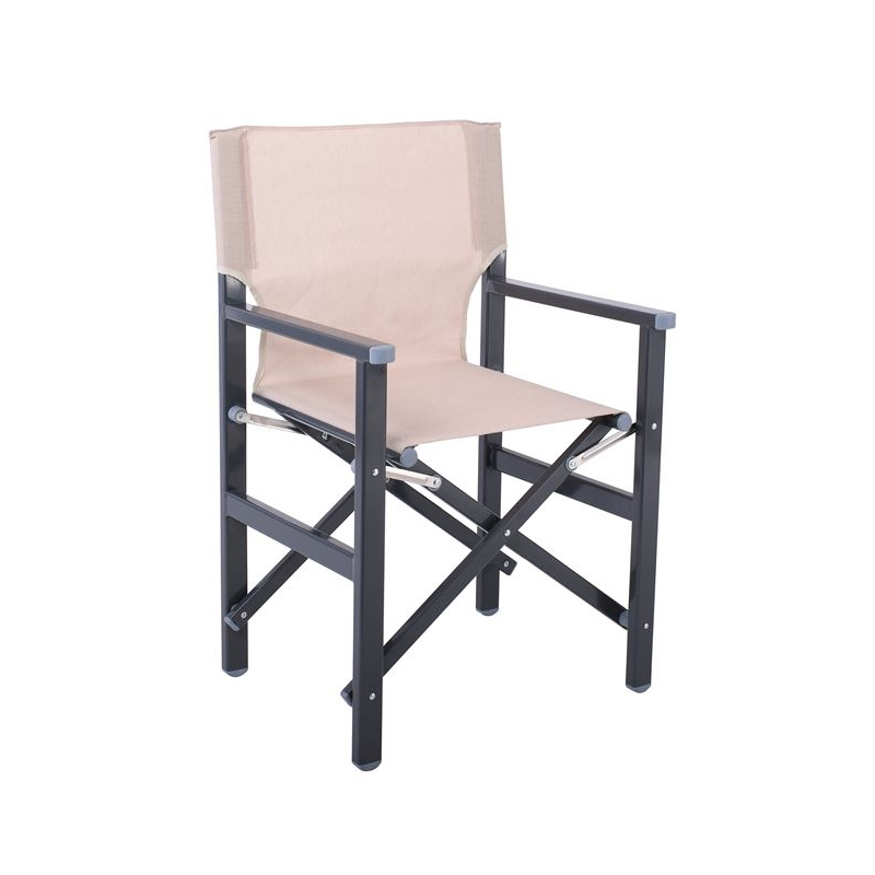 Σκηνοθέτη Πολυθρόνα, Αλουμίνιο Ανθρακί (1,2mm), Textilene Μπεζ (Μονοκόμματο), Πτυσσόμενη 55x46x88cm