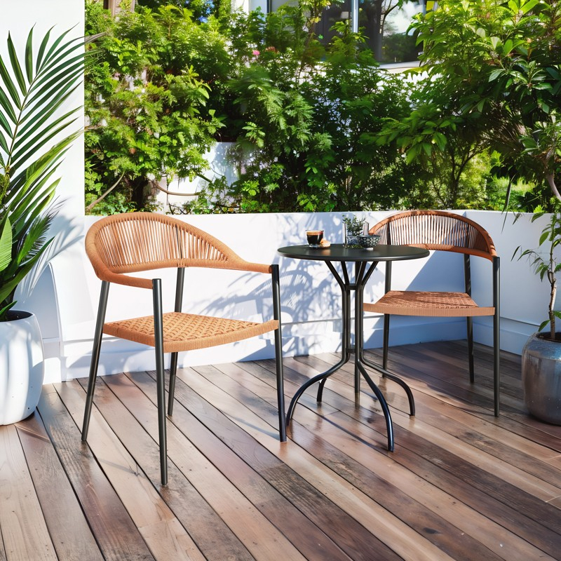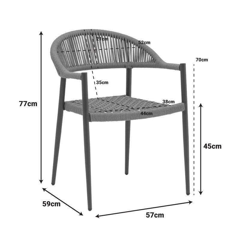Πολυθρόνα Freiburg pakoworld αλουμίνιο μαύρο-σχοινί φυσικό-κεραμιδί