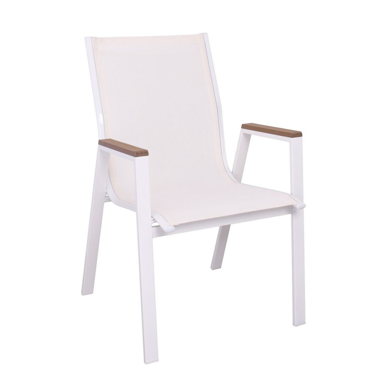 VIRNA Πολυθρόνα Κήπου Βεράντας, Μέταλλο Βαφή Άσπρο, Textilene Άσπρο,PolywoodΦυσικό 56x63x90cm