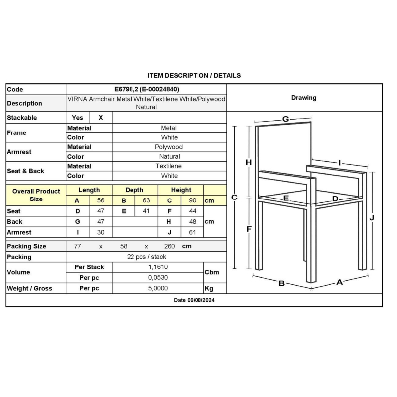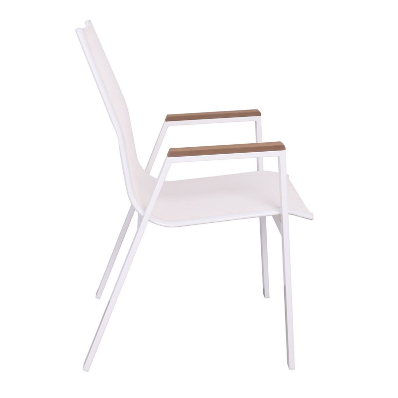 Ε6798,2 VIRNA Πολυθρ.Μεταλ.Άσπρο/Textilene Άσπρο/Polywood Φυσικό