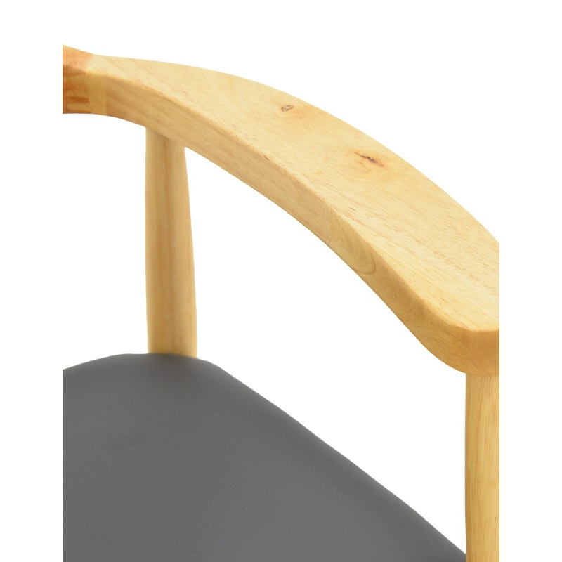 Πολυθρόνα Joube pakoworld rubberwood σε φυσική απόχρωση με μαύρο pu μαξιλάρι 59x48x73εκ