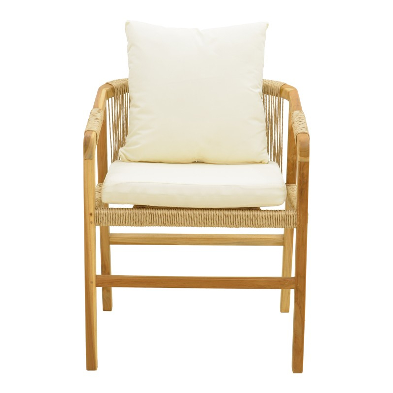 Πολυθρόνα Cuerda pakoworld σκελετός teak ξύλο με pe σχοινί σε φυσική απόχρωση 55x60x80εκ
