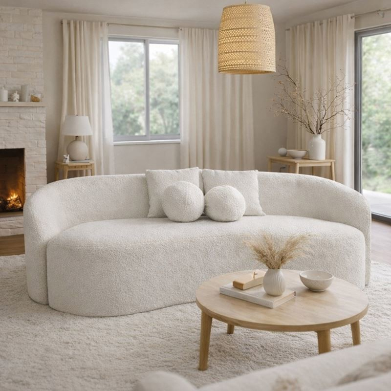 LYON Καναπές 2θ - Σαλονιού - Καθιστικού, Teddy Ύφασμα Άσπρο 178x82x68cm