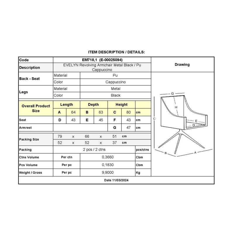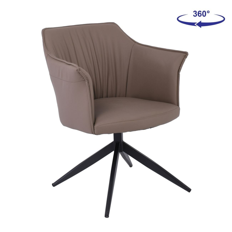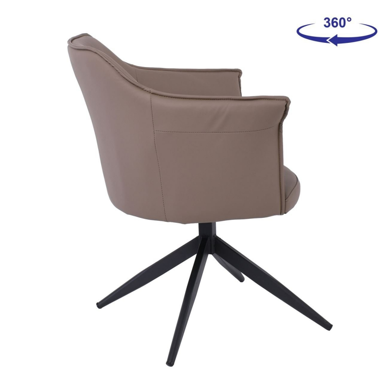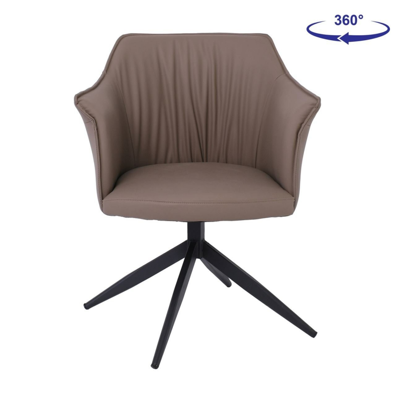 EVELYN Πολυθρόνα Περιστρεφόμενη, Μέταλλο Βαφή Μαύρο, Pu Cappuccino 64x63x80cm