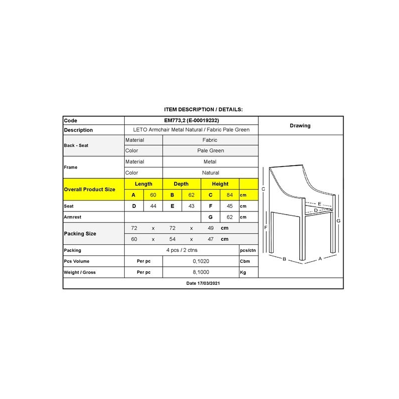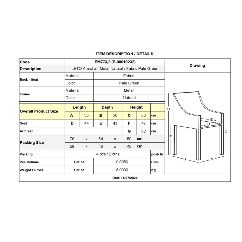 ΕΜ773,2 LETO Πολυθρόνα Μέταλλο Βαφή Φυσικό/Ύφασμα Βεραμάν