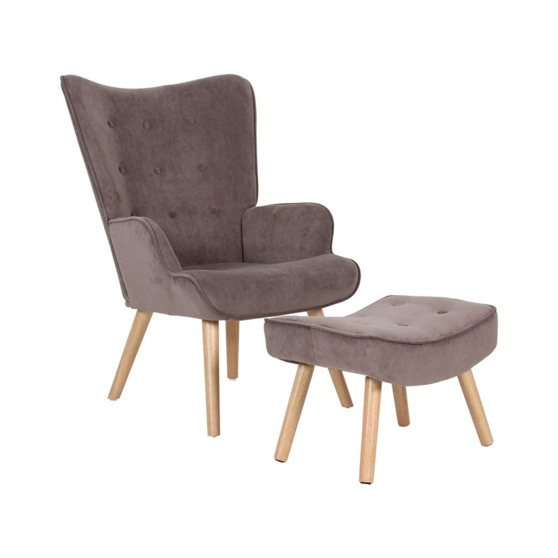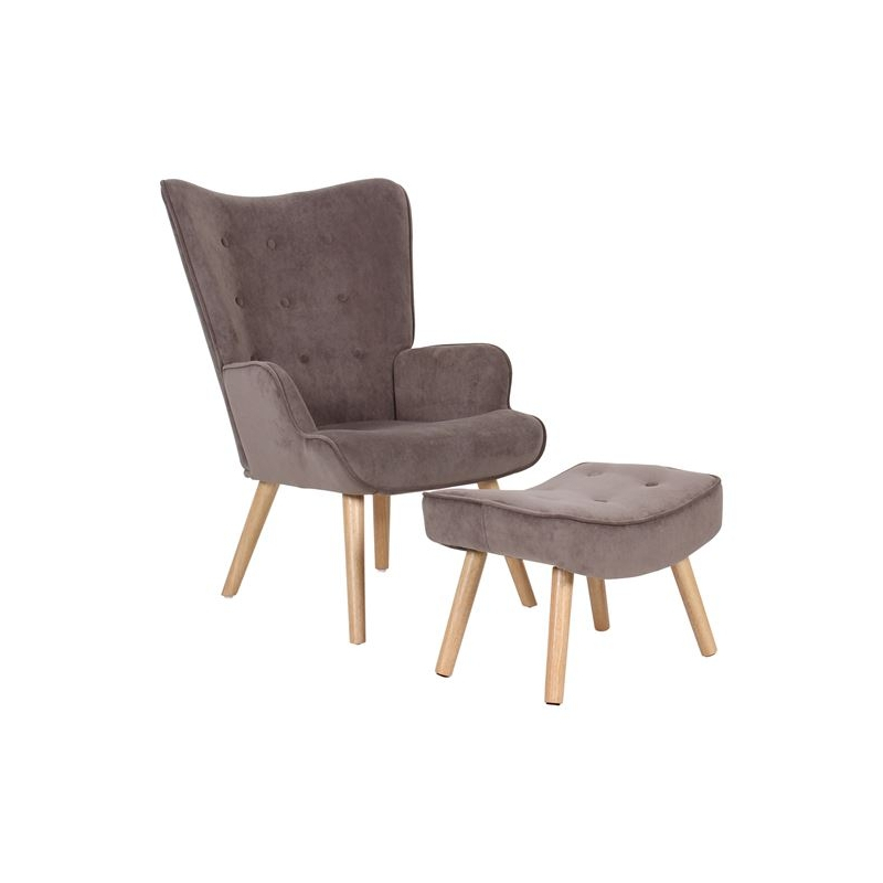 Ε7141,8 ALMA Set Πολυθρόνα + Σκαμπό Φυσικό/Ύφασμα Velure Καφέ (K/D)